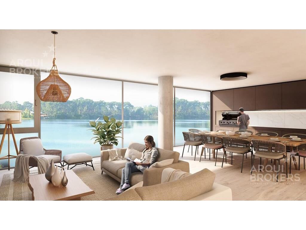El edificio cuenta con con barbacoas con living, cowork, gimnasio, playroom, piscina interioy y exterior climatizada, solárium, losa radiante, seguridad, laundry, estación eléctrica, bicicletero, muelle privado y kayaks.
