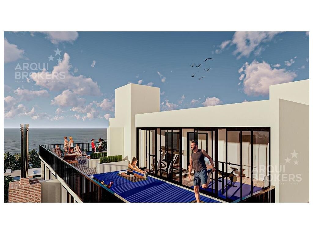 El edificio cuenta con barbacoa abierta y cerrada, gimnasio, solárium, cowork, sala de reuniones, coliving, laundry, playroom, CCTV y bicicletas.