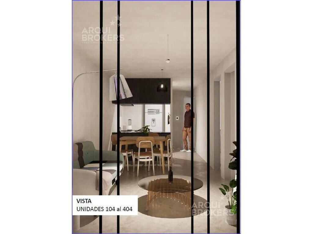 Living comedor con cocina integrada con placares, 1 dormitorio, 1 baño. Patio de 21m2.