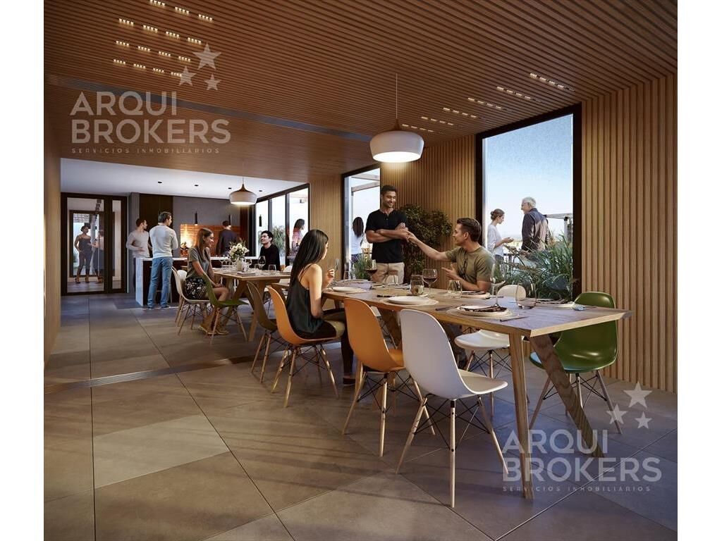 El edificio cuenta con: bicicleteros, 8 ascensores, 150 m2 de patio enjardinado, 880 m2 de azotea transitable con circuito aeróbico, solárium y terraza jardín, lobby con conswerjería 24 hs y sector de estar. Espacio para co working, salas para eventos con patio en planta baja, sala para eventos con terraza en primer piso, rooftop con barbacoa completa, terraza jardín. laundry, jardín central con espejo de agua.