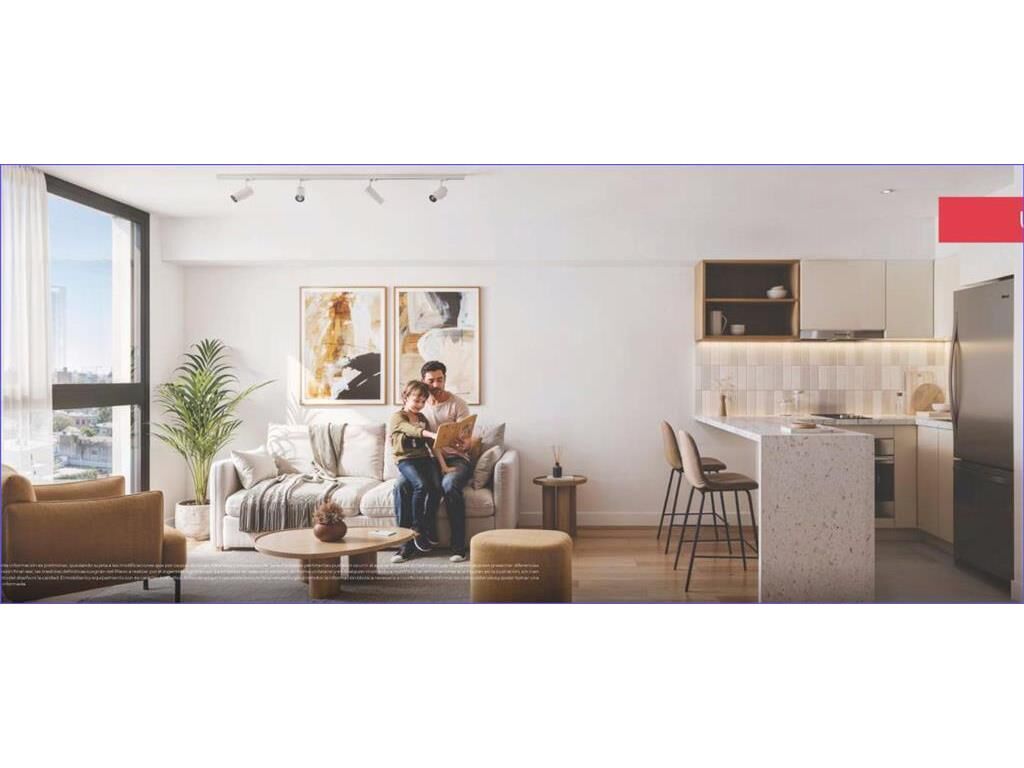 Living comedor con terraza, cocina integrada con placares, 1 dormitorio con vestidor y cortina de enrollar, 1 baño completo.