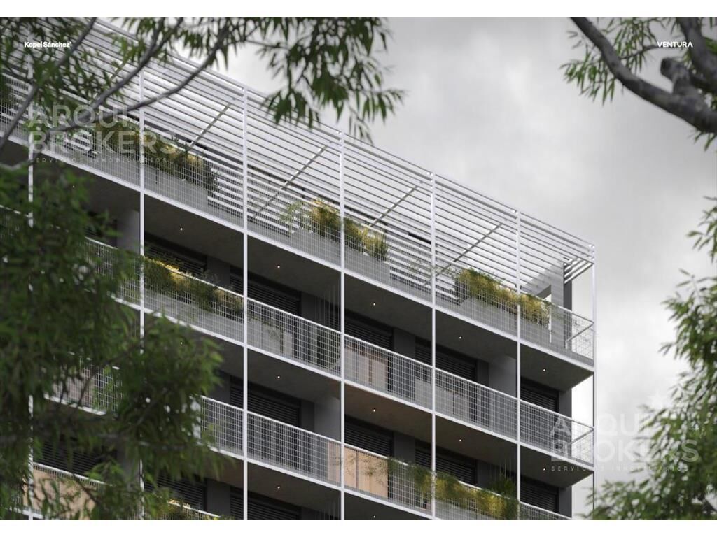 Living comedor con terraza, cocina integrada con placares, 1 dormitorio, 1 baño con conexión para lavarropas. Cuenta con agua caliente individual y separación de residuos.
