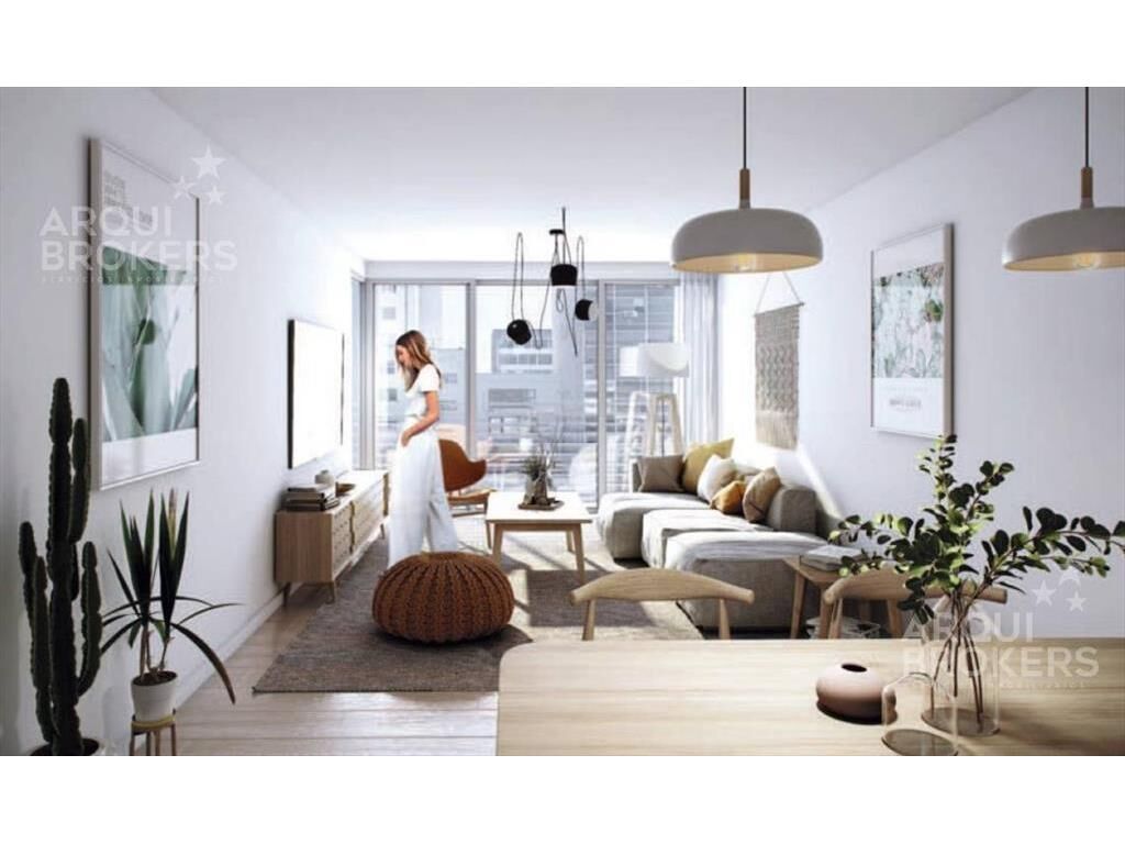 Living comedor con terraza, cocina integrada con placares, 1 dormitorio, 1 baño.