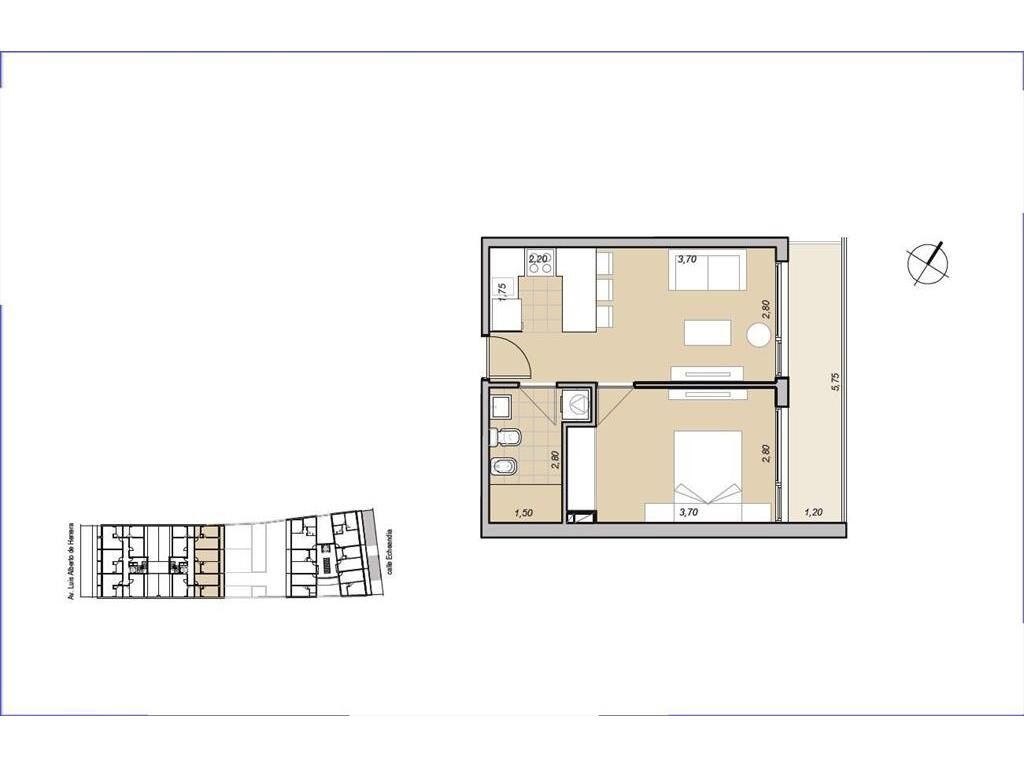 Living comedor con terraza, cocina integrada con placares, 1 dormitorio con salida a terraza, 1 baño.