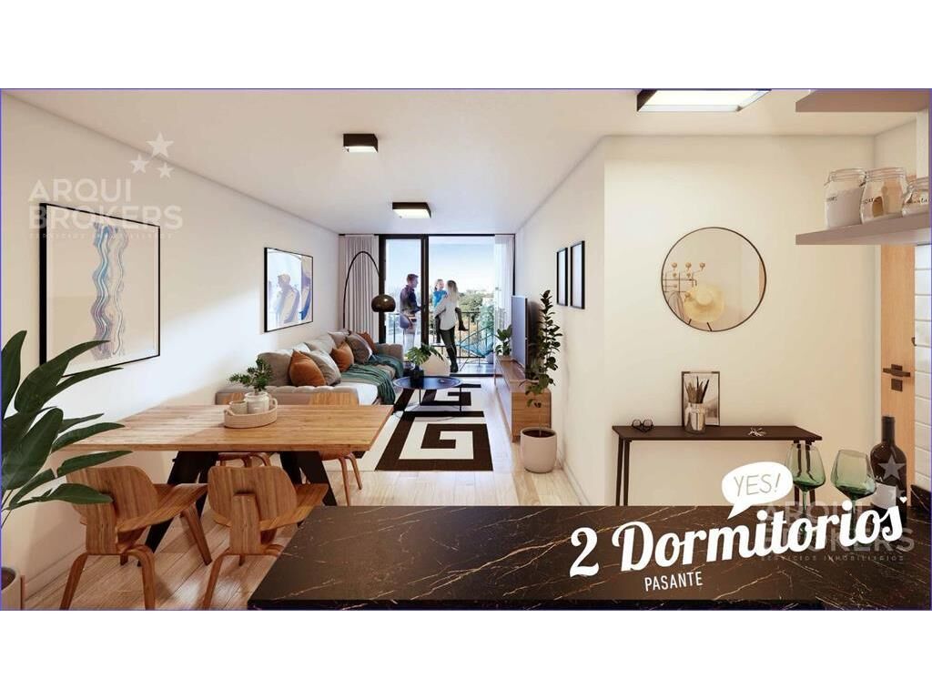 Living comedor con terraza al frente con parrillero, cocina integrada con placares, 1 dormitorio al frente co placard, 1 baño completo.