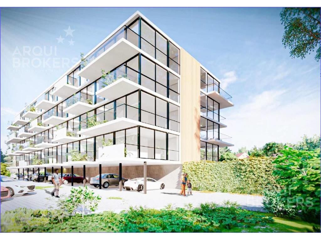 El edificio cuenta con espacios de parrilleros y estacionamiento de cortesía, piscina exterior, co-work.