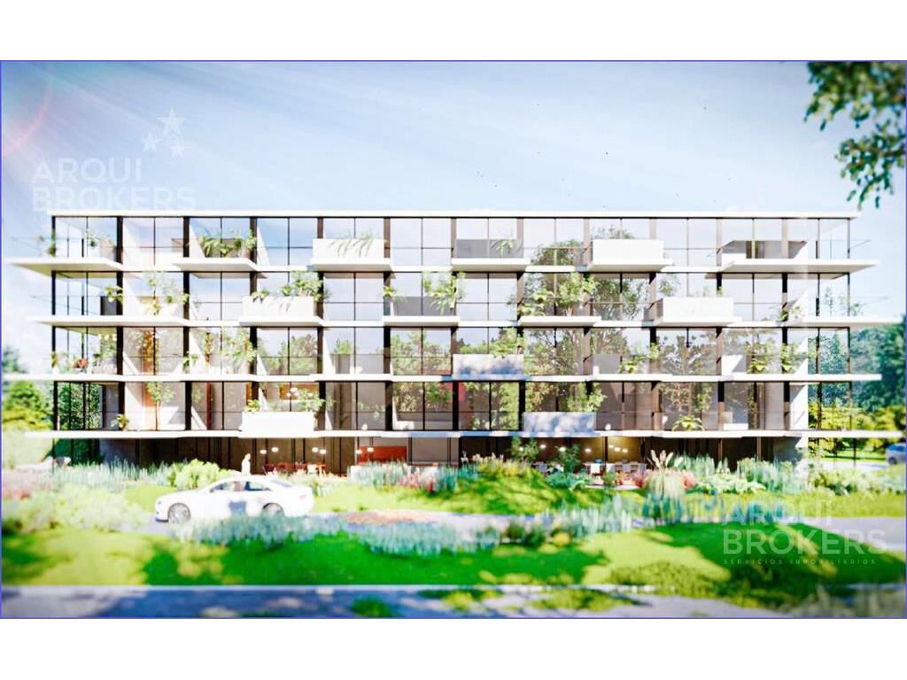El edificio cuenta con espacios de parrilleros y estacionamiento de cortesía, piscina exterior, co-work.