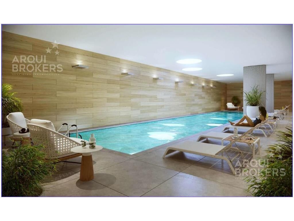 El edificio cuenta con: barbacoa cerrada, barbacoa abierta, piscina interior de excelentes dimensiones para disfrutar durante todo el año, gimnasio con máquinas de última generación, lavadero común equipado con máquinas lavarropas y secarropas y solárium.