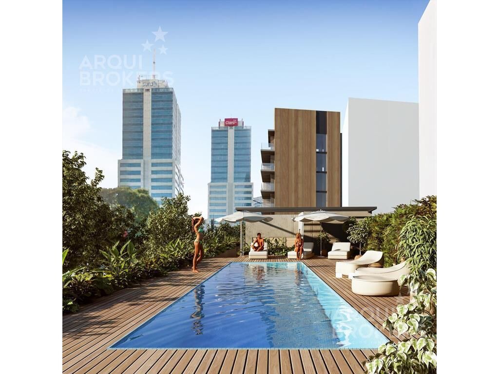 en la azotea del edificio para usos de esparcimiento y recreación al aire libre en el rooftop y gimnasio completamente equipado.