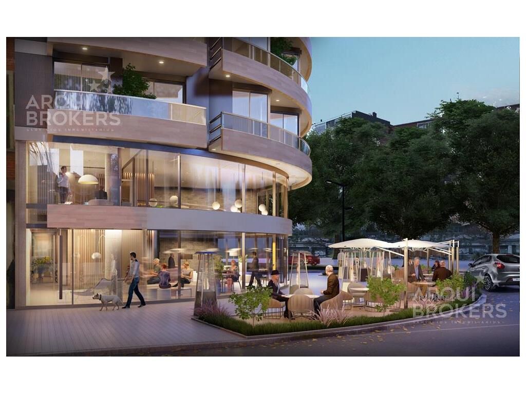 Amenities: cowork, rooftop lounge con livings exteriores, fogones y parrilleros, club house con parrillero, espacio gourmet con cocina abierta, rooftop bar y gimnasio.