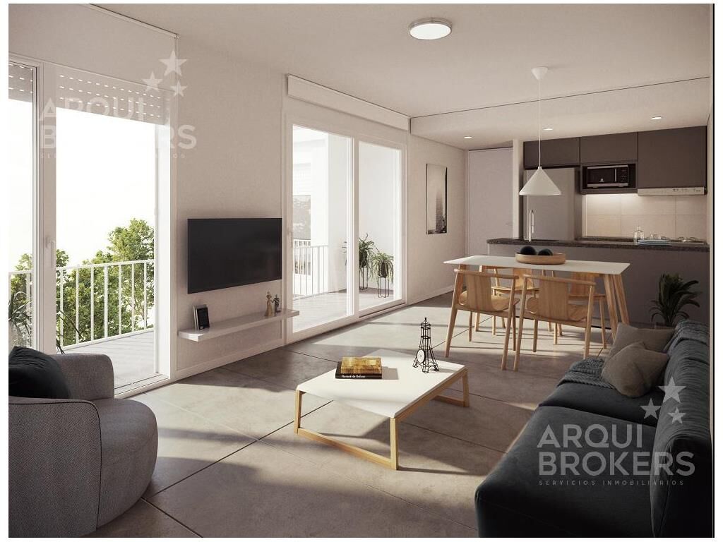 Living comedor con terraza, cocina integrada con barra y placares bajo mesada y aéreo, 1 dormitorio con placard, 1 baño completo.