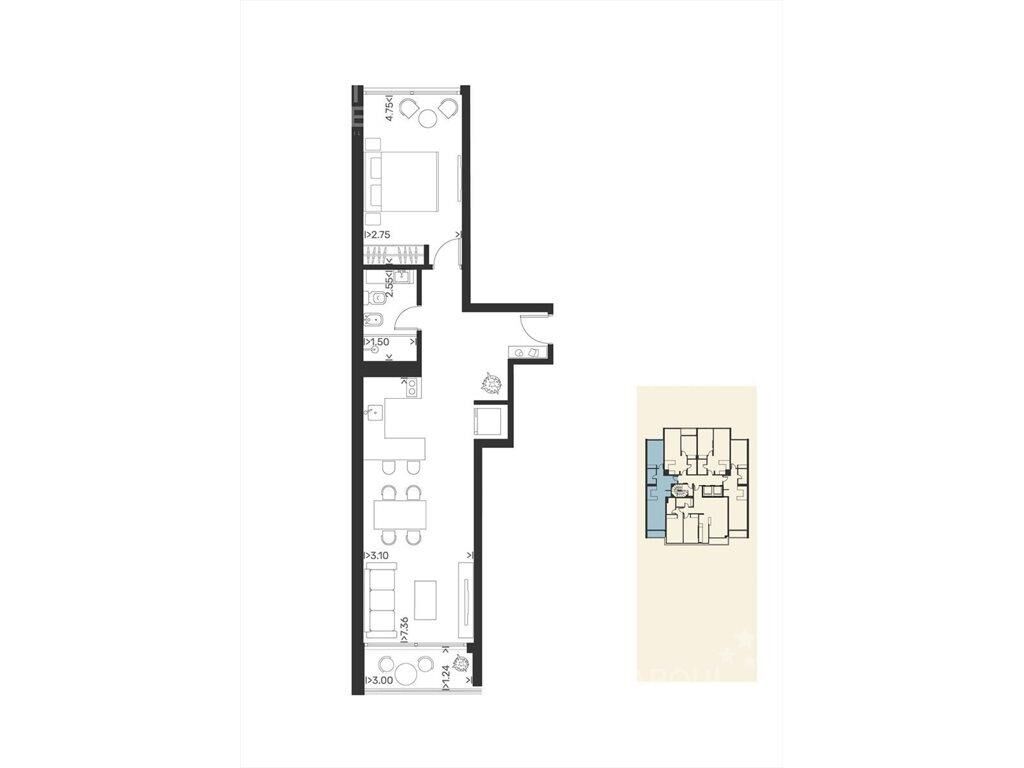 Living comedor con terraza al frente, cocina integrada con placares, 1 dormitorio con placard, 1 baño.
