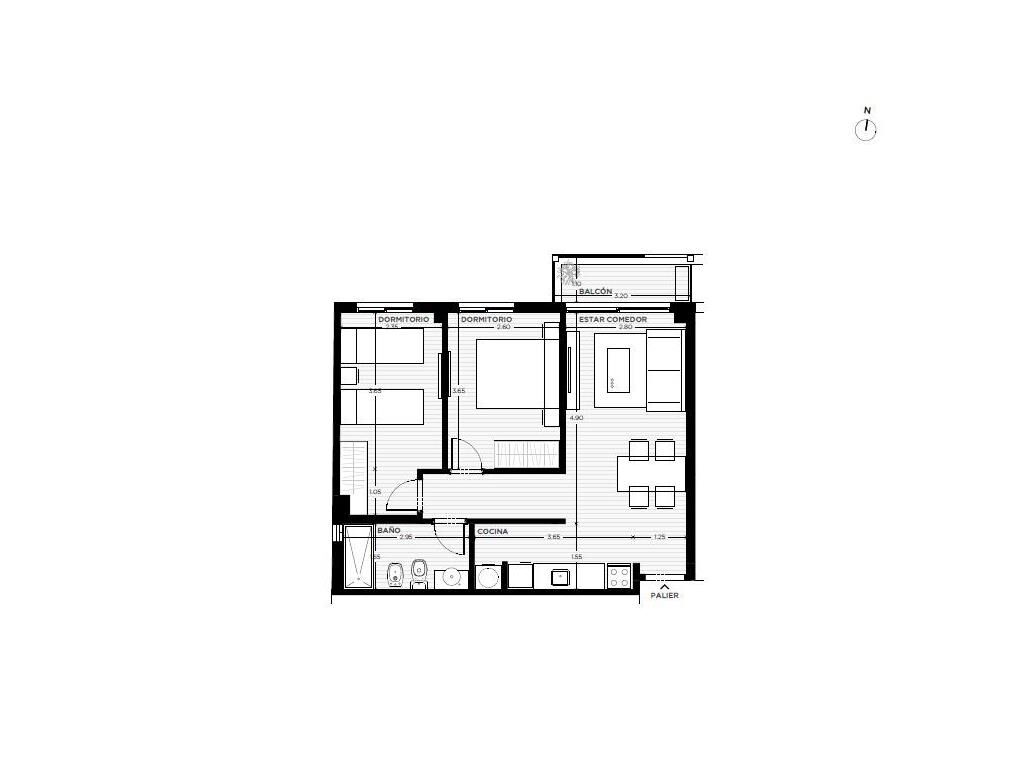 Apartamento con cocina integrada, living comedor con acceso a terraza. Dos dormitorios. Baño Completo.