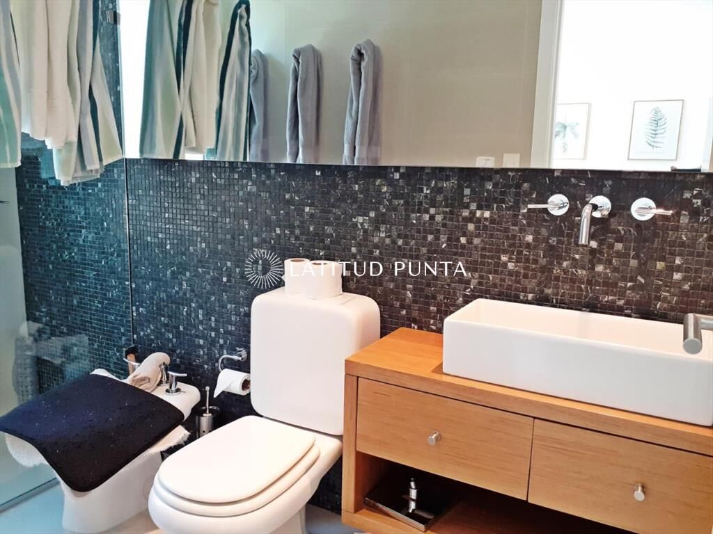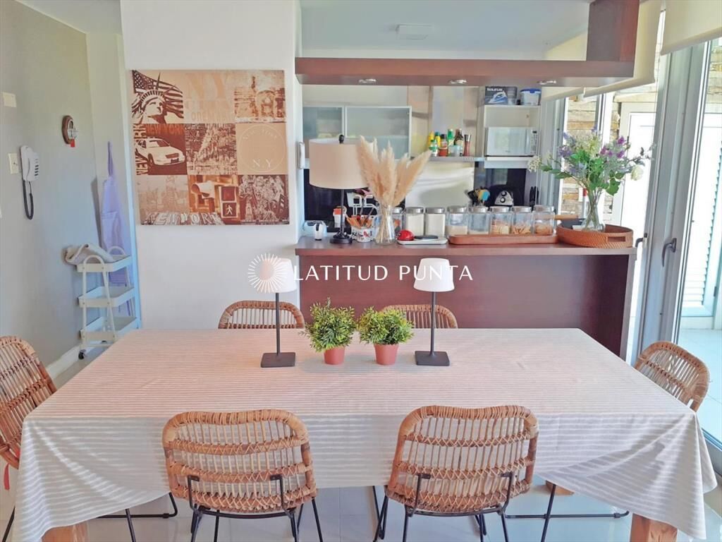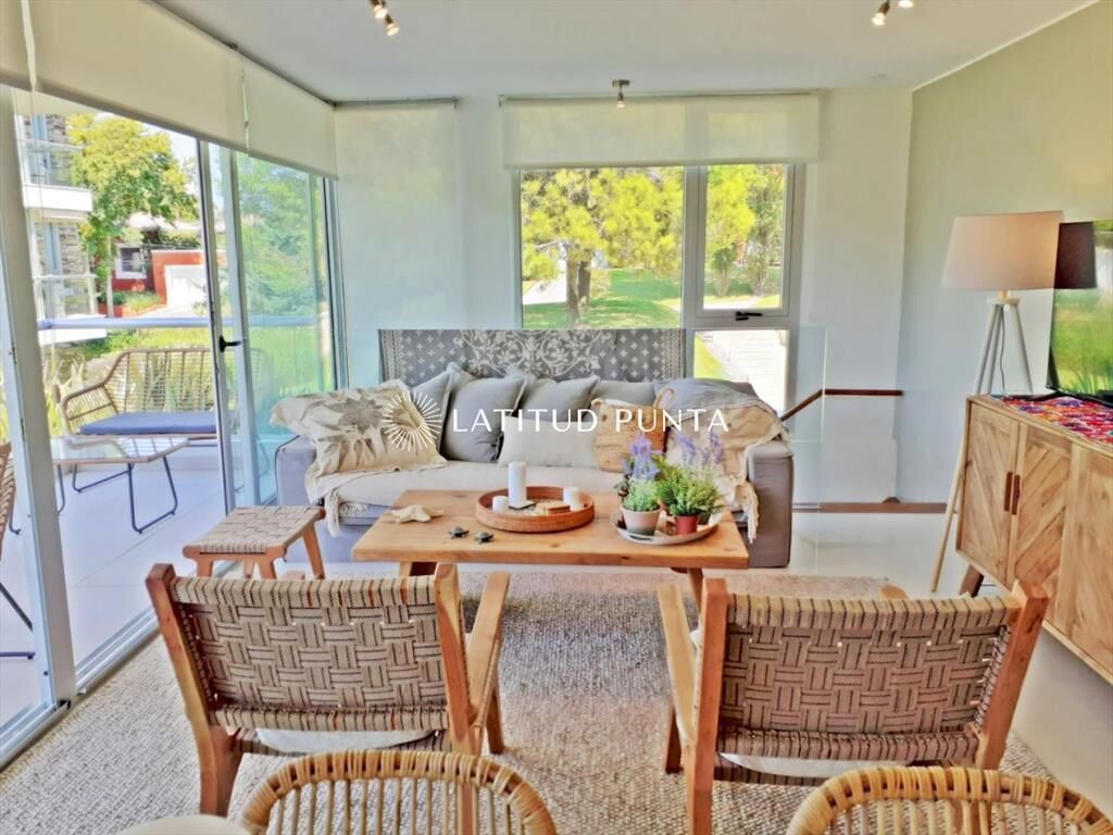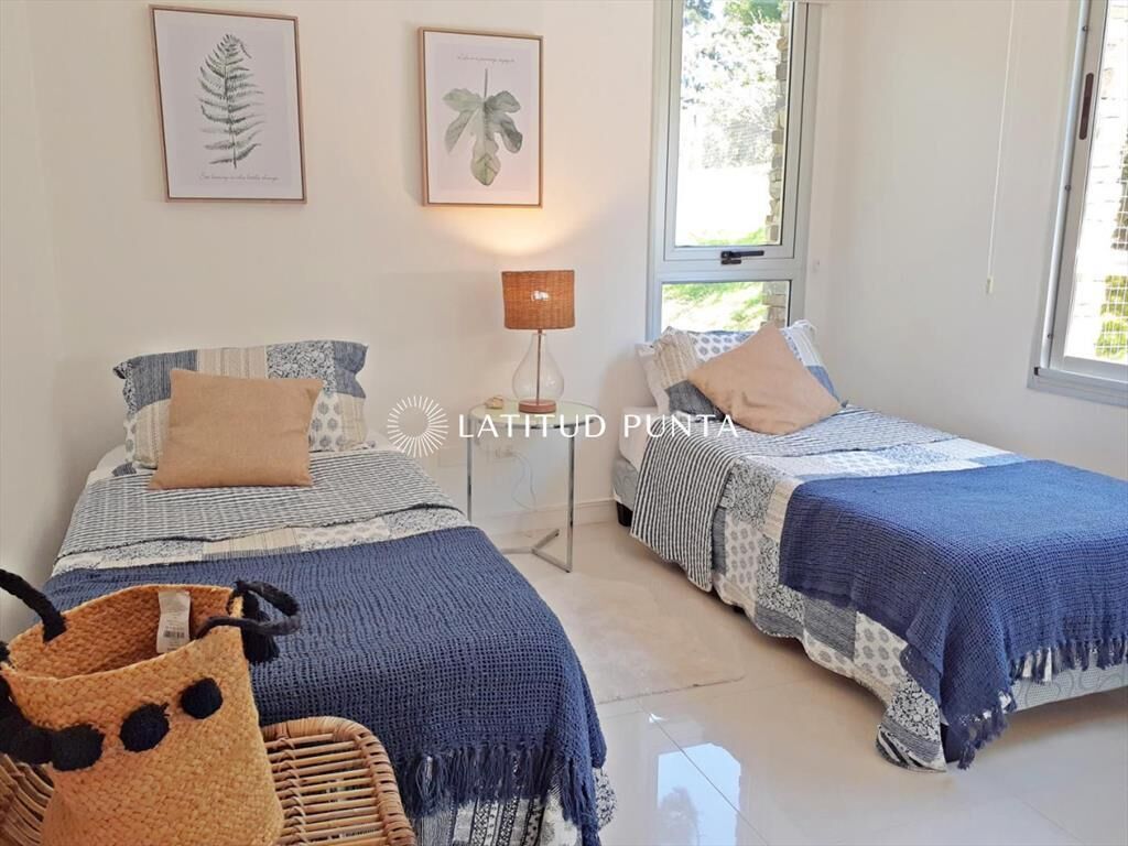 Apartamento de 2 dormitorios más dependencia de servicio en Rincón del Indio - Punta del Este. Dúplex a 200 metros del mar. Planta alta: 2 dormitorios en suite. Luminoso living-comedor. Toilette. Terraza. Planta baja: amplio playroom con kitchenette. Jardín-terraza privado con parrillero propio. Dependencia de servicio. Todos los amenities. Amoblado, aire acondicionado, losa radiante, TV cable, teléfono y WiFi.