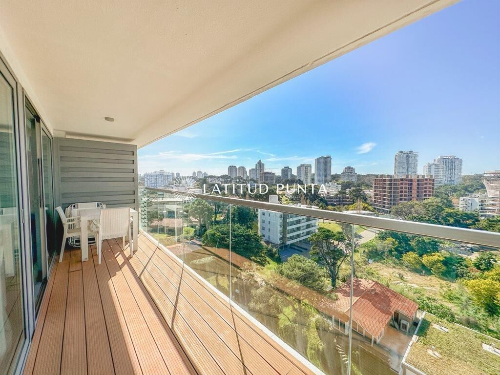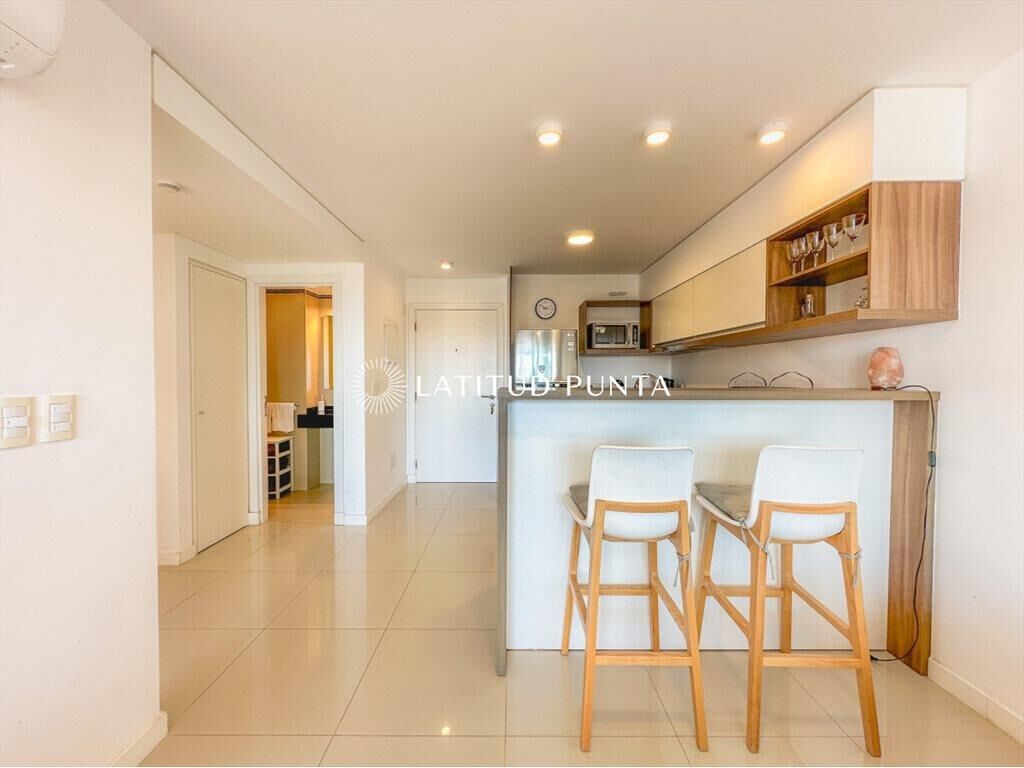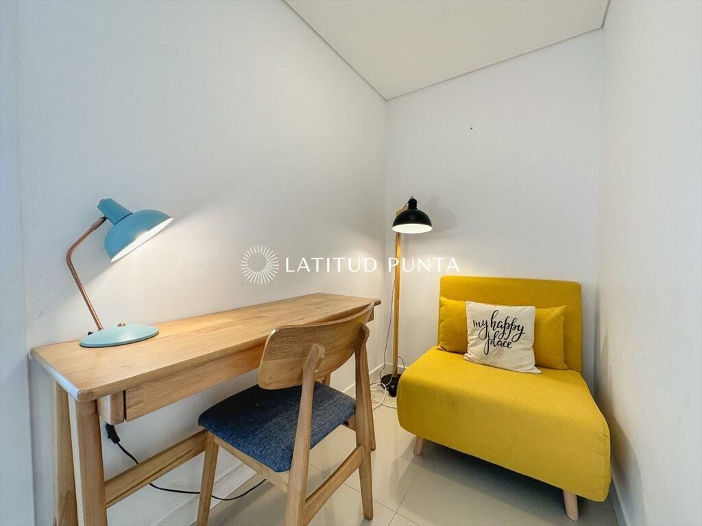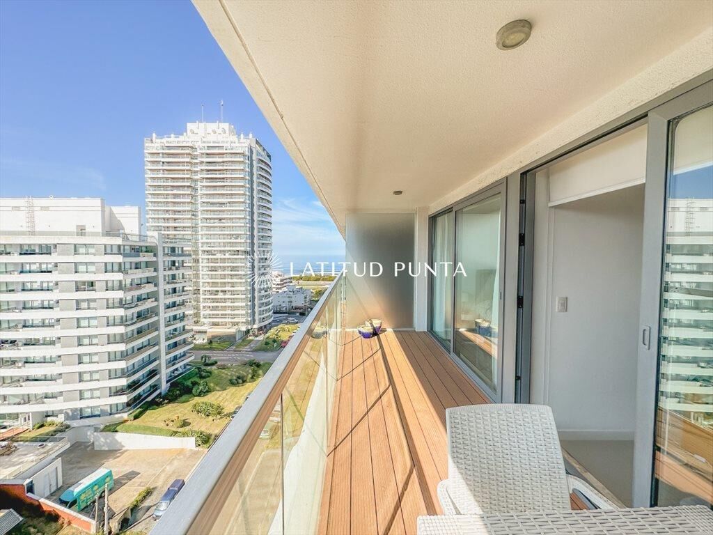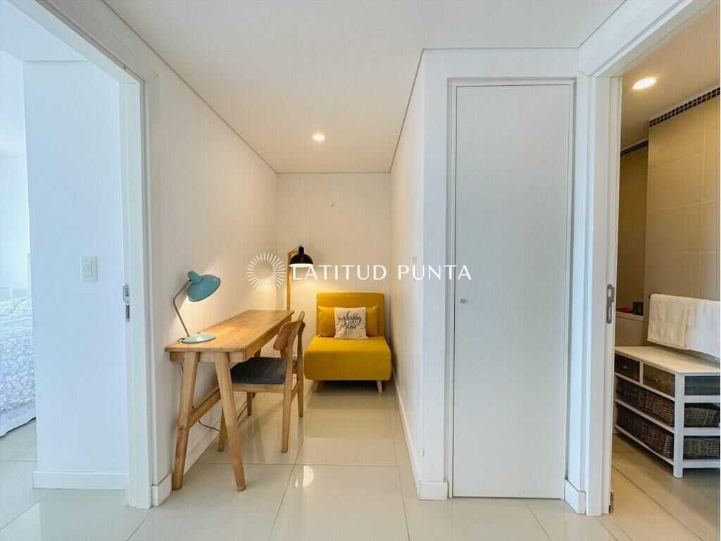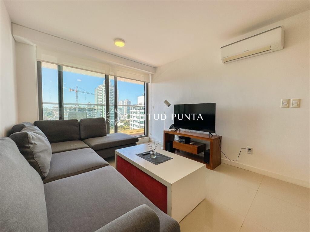 Exclusivo apartamento de 1 dormitorio y medio que ofrece una experiencia de vida incomparable combinando lujo, estilo y una ubicación privilegiada a tan solo 150 metros del mar y además cercano a zonas comerciales de Punta. Gran terraza con accesos dobles tanto del living como del dormitorio principal conectando con vistas despejadas al entorno y parciales a Playa Brava. Aberturas dobles (DVH) y detalles de calidad premium. Equipado y amueblado con muy buen gusto. AA Inverter en living y dormitorio.