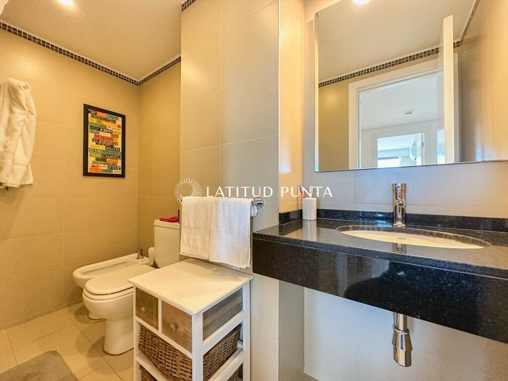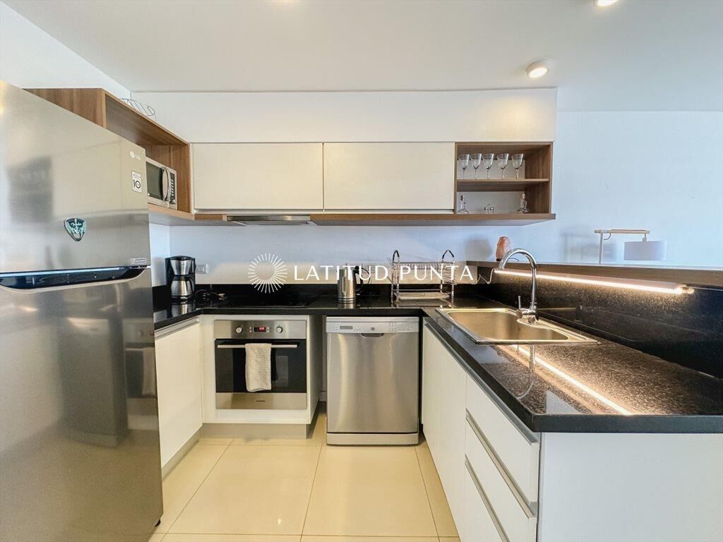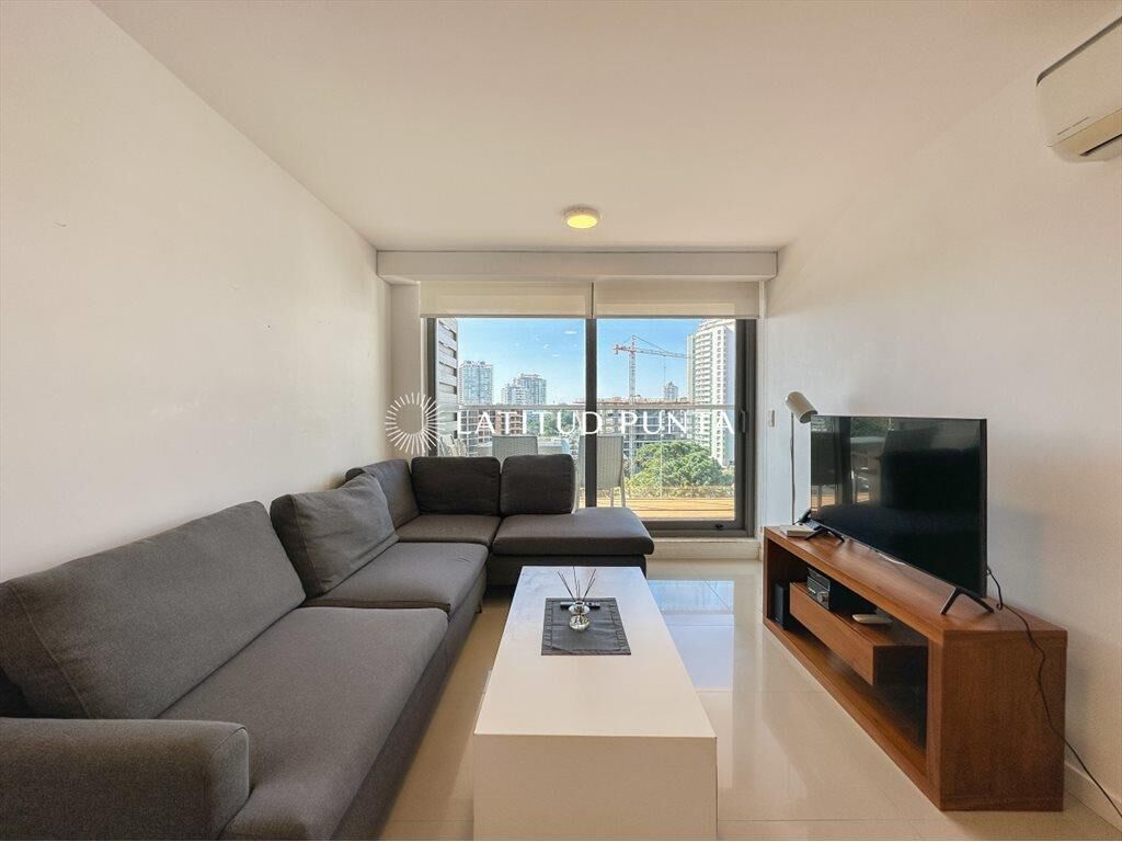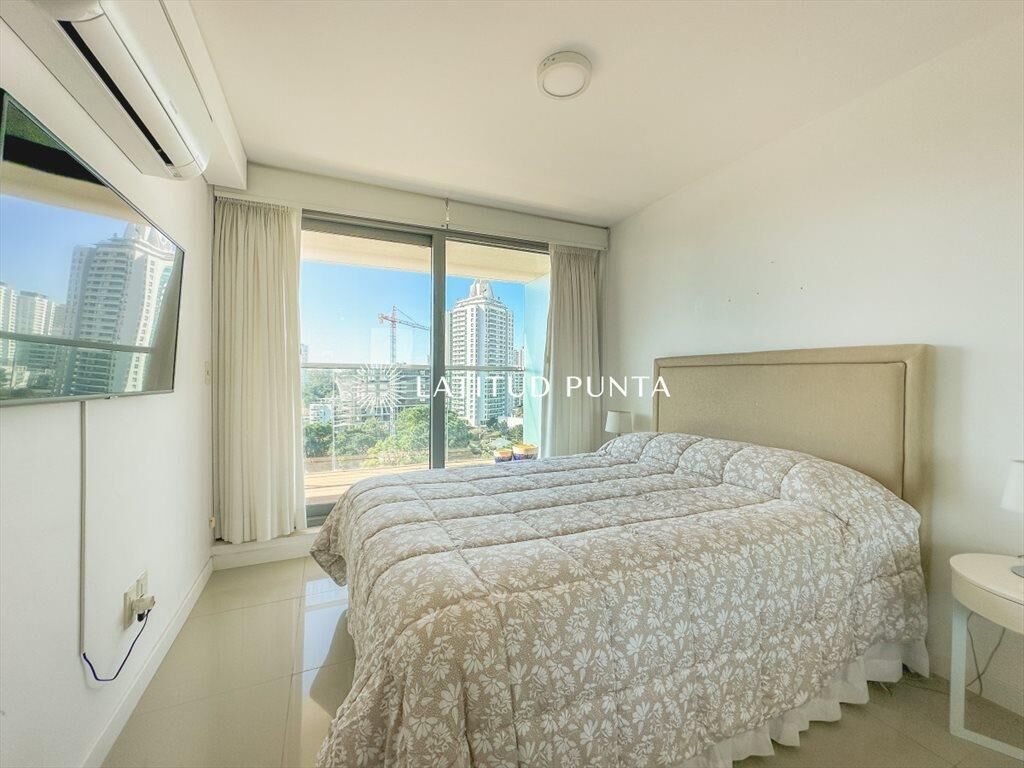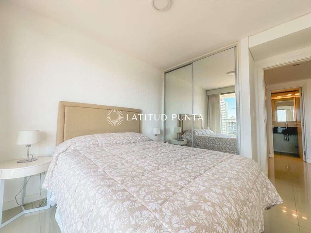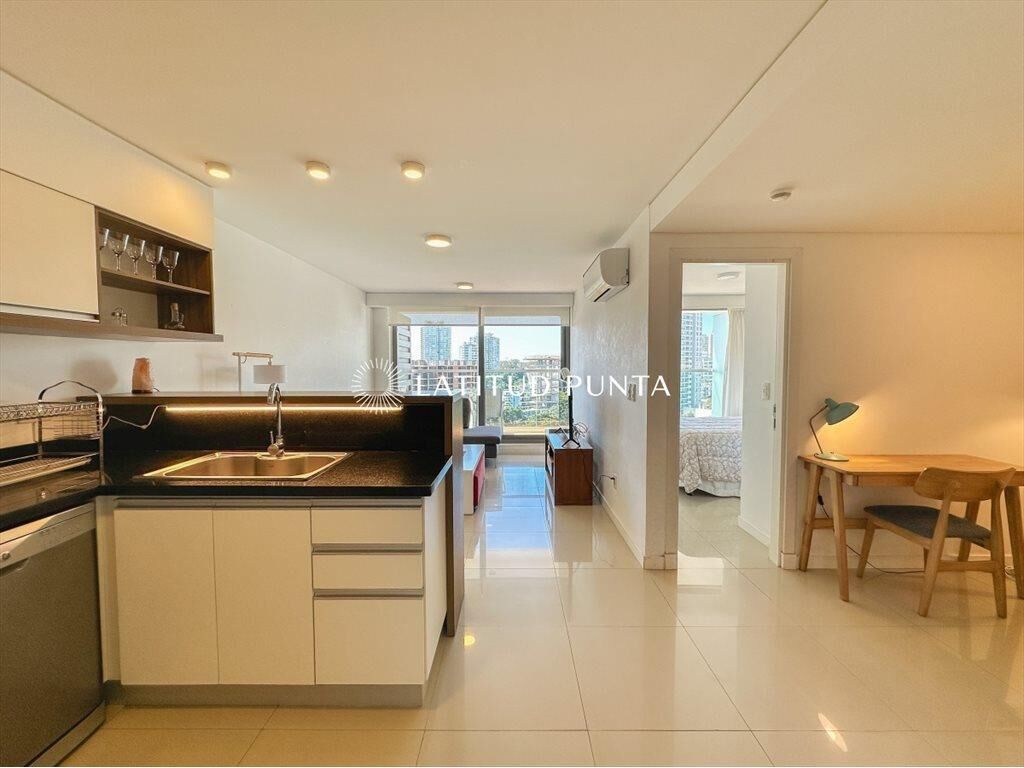 Exclusivo apartamento de 1 dormitorio y medio que ofrece una experiencia de vida incomparable combinando lujo, estilo y una ubicación privilegiada a tan solo 150 metros del mar y además cercano a zonas comerciales de Punta. Gran terraza con accesos dobles tanto del living como del dormitorio principal conectando con vistas despejadas al entorno y parciales a Playa Brava. Aberturas dobles (DVH) y detalles de calidad premium. Equipado y amueblado con muy buen gusto. AA Inverter en living y dormitorio.