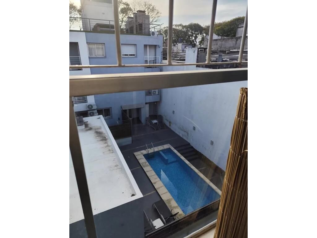 1 dormitorio con balcón, azotea común, piscina.