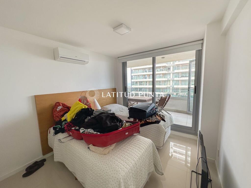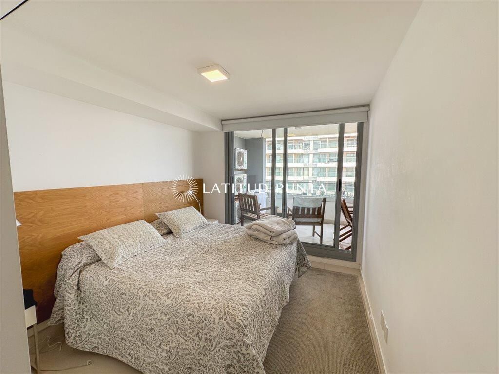 Este apartamento ubicado en las primeras paradas de la brava a 200 metros del mar, cuenta con 2 dormitorios (1 en suite) y 2 baños. Cocina americana y amplio living-comedor. Recepción 24hs, microcine, gimnasio, playroom, servicio de mucamas, barbacoa, pileta abierta climatizada, sala de masajes, sauna y servicio de playa.