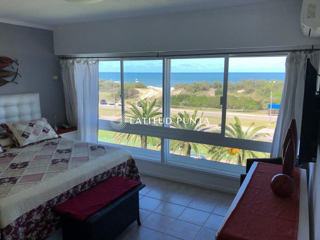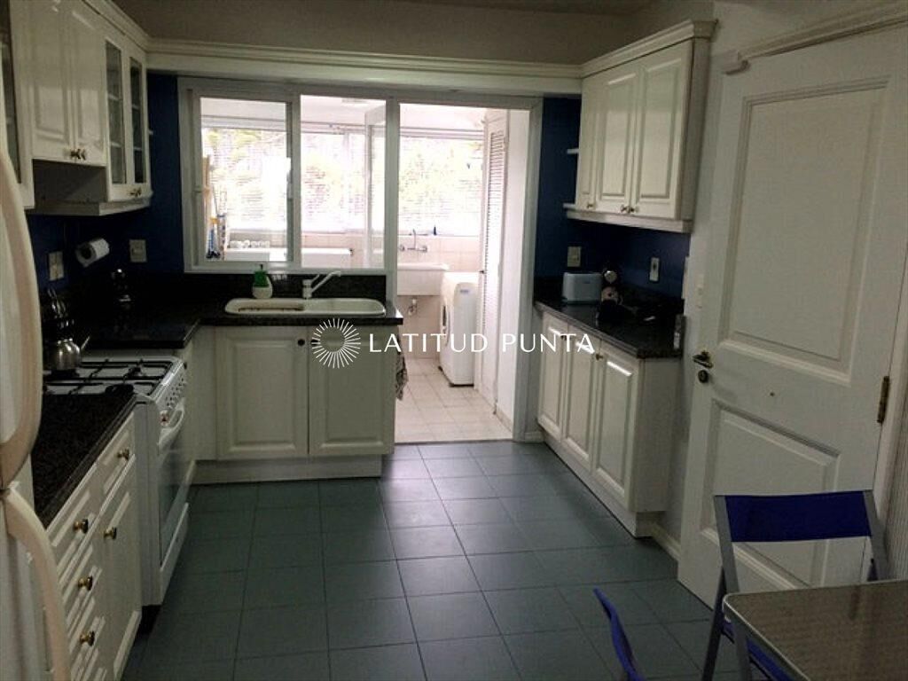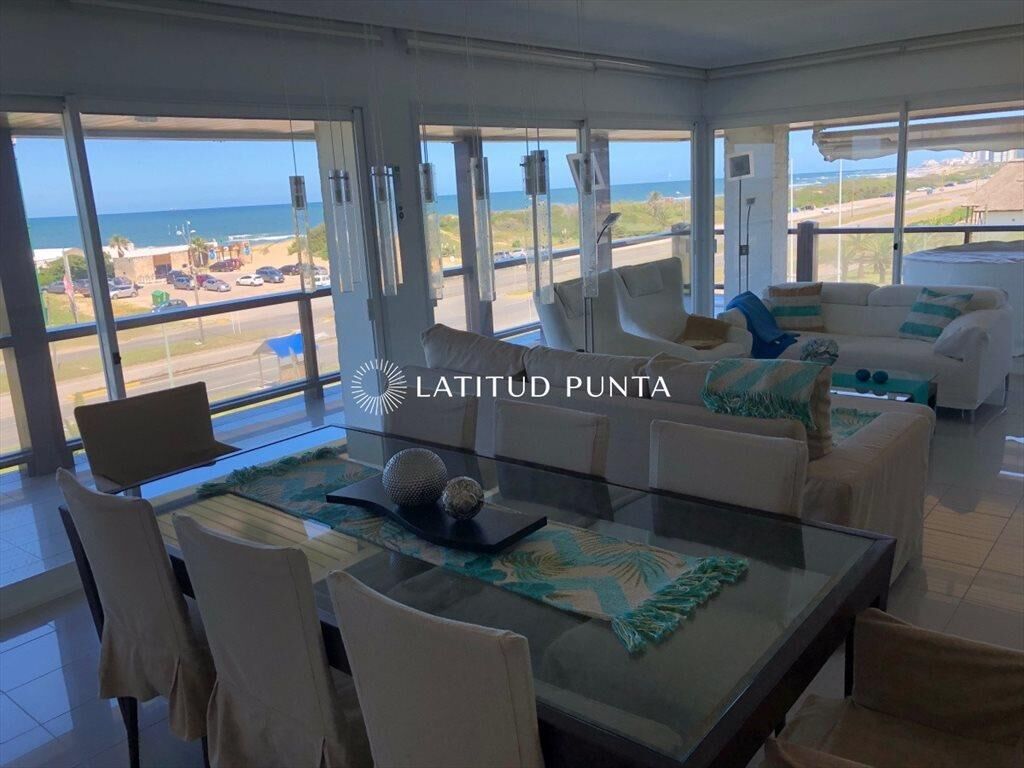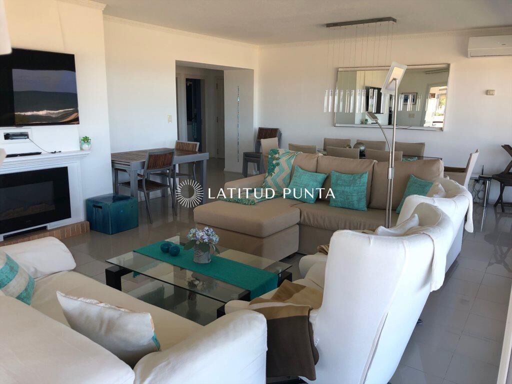 Edificio de categoría en San Rafael, frente a Playa Brava. Cuenta con recepción 24hs, piscina con solarium, gimnasio, barbacoa cerrada con parrillero, playroom. Apartamento esquinero con una superficie total de 208 metros propios más 2 garages más baulera. Amplio living-comedor con estufa a leña, vista franca al océano y gran terraza con parrillero propio. Toilette. Cocina con office. Lavadero. Total de 4 dormitorios en suites con placares (la suite principal se ubica al frente con vista abierta al mar). Tiene equipos de aire acondicionado y calefacción por losa radiante eléctrica individual.