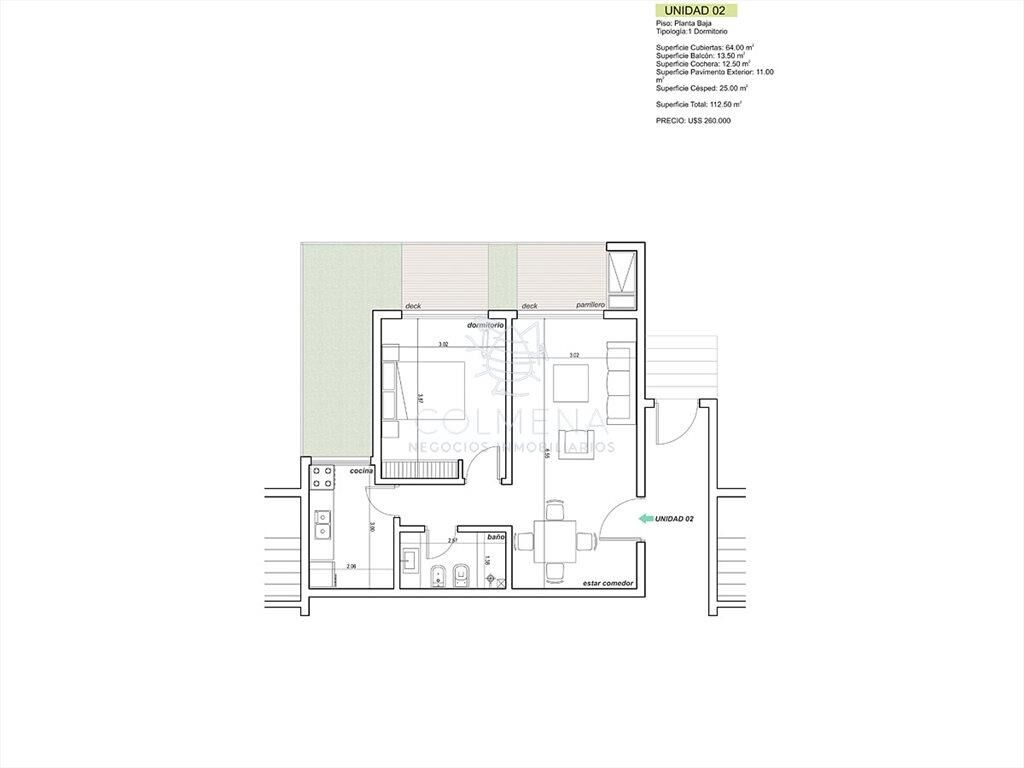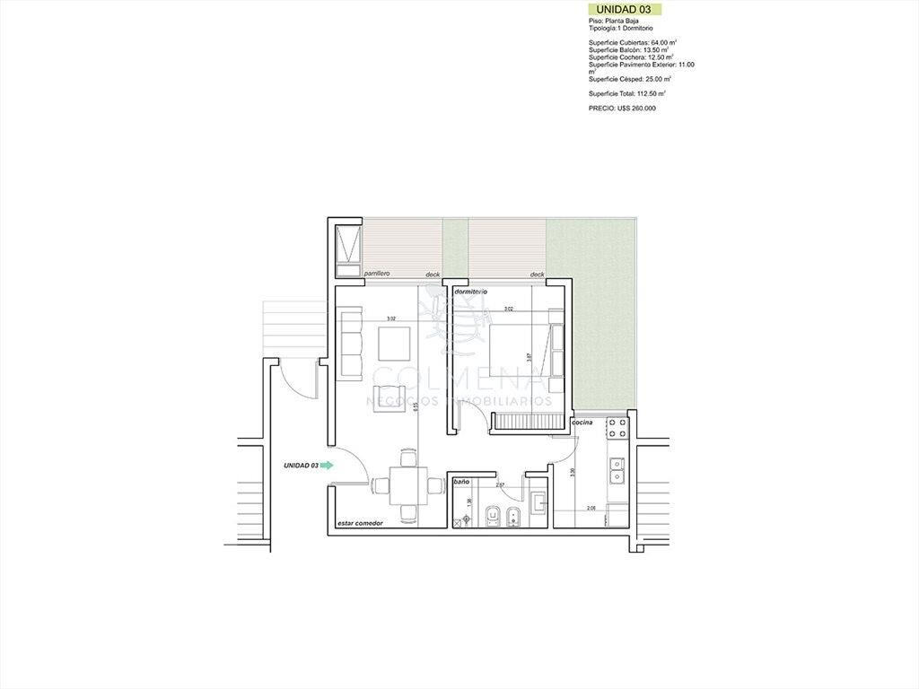 Muy linda planta de 1 dormitorios y 1 baños, cocina con lavadero.Planta baja con jardín y parrillero propio.Excelentes terminaciones, buenos materiales, excelente carpintería.Cochera abierta al fondo.