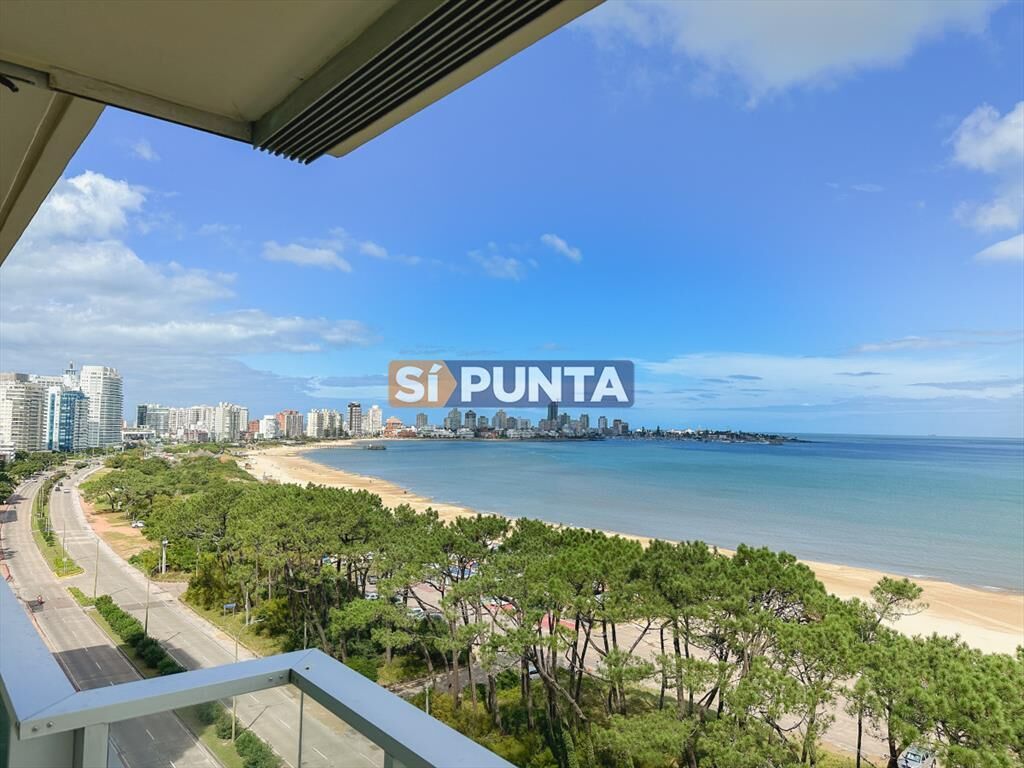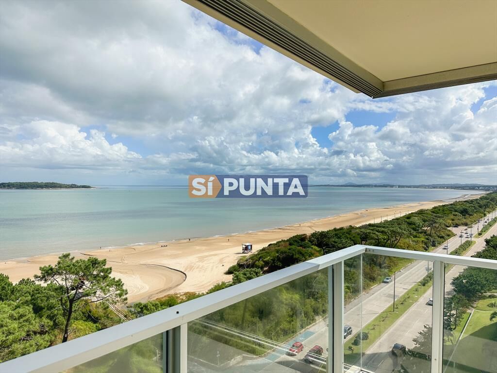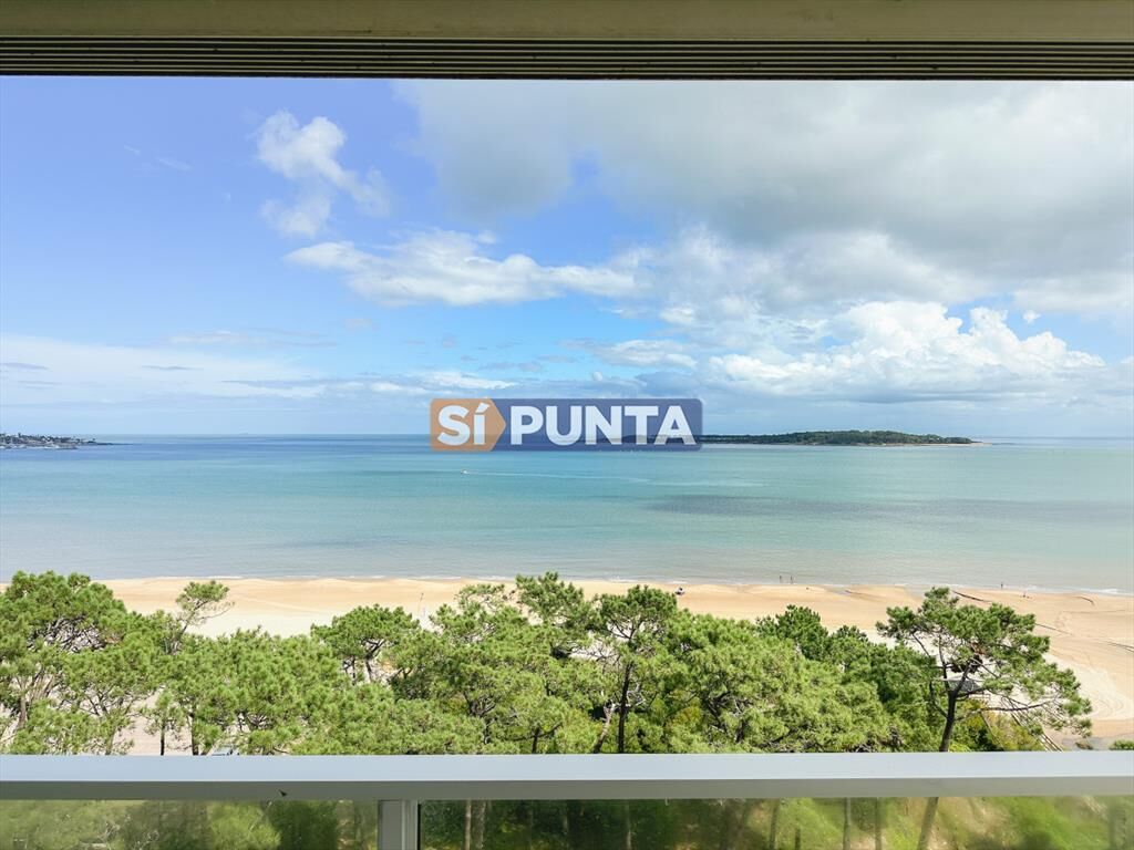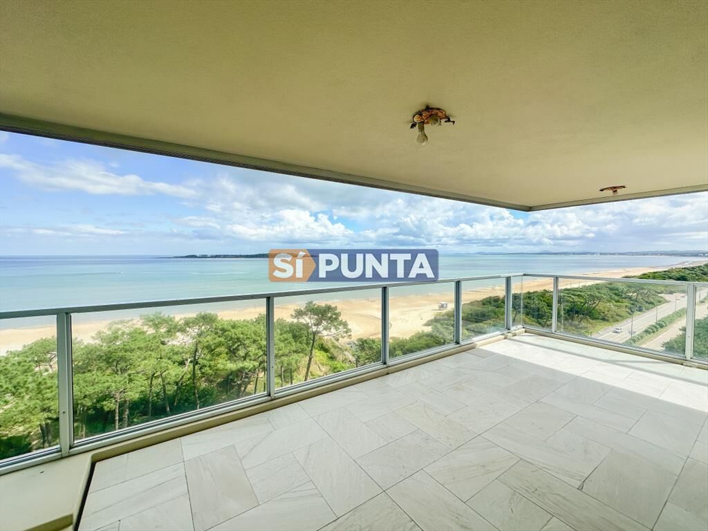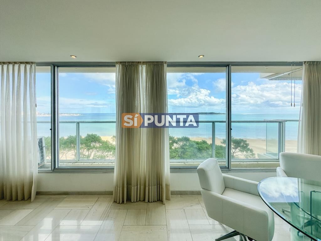 Exclusivo semi-piso en Golden Gate, emblemático edificio en la parada 7 de Punta del Este, primera línea, playa Mansa. Gran ambiente principal sectorizado en doble living, comedor y bar. Terraza esquinera. Cocina definida con comedor diario, lavadero, dependencia completa e ingreso de servicio. Hall con toilette de recepción. 3 dormitorios en suite (3 baños completos), principal con amplio vestidor. Garage en subsuelo para dos vehículos. Edificio de excelente construcción con recepción 24hs, servicio de mucamas, servicio de playa, servicio de lavado de autos, piscina exterior, sala de masajes, salón de usos múltiples, sauna con zona relax, gimnasio, playroom y playground.