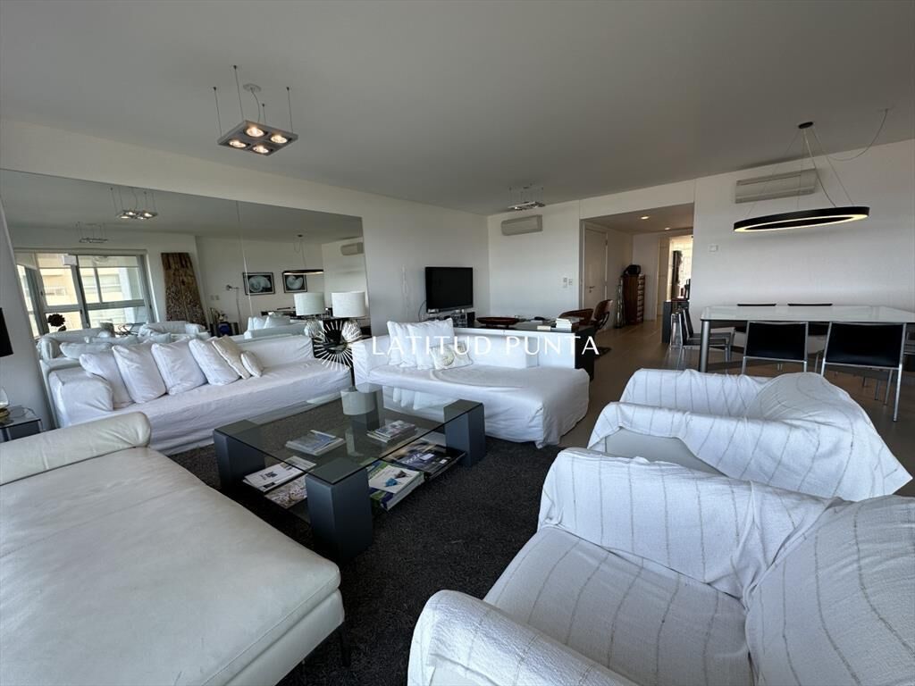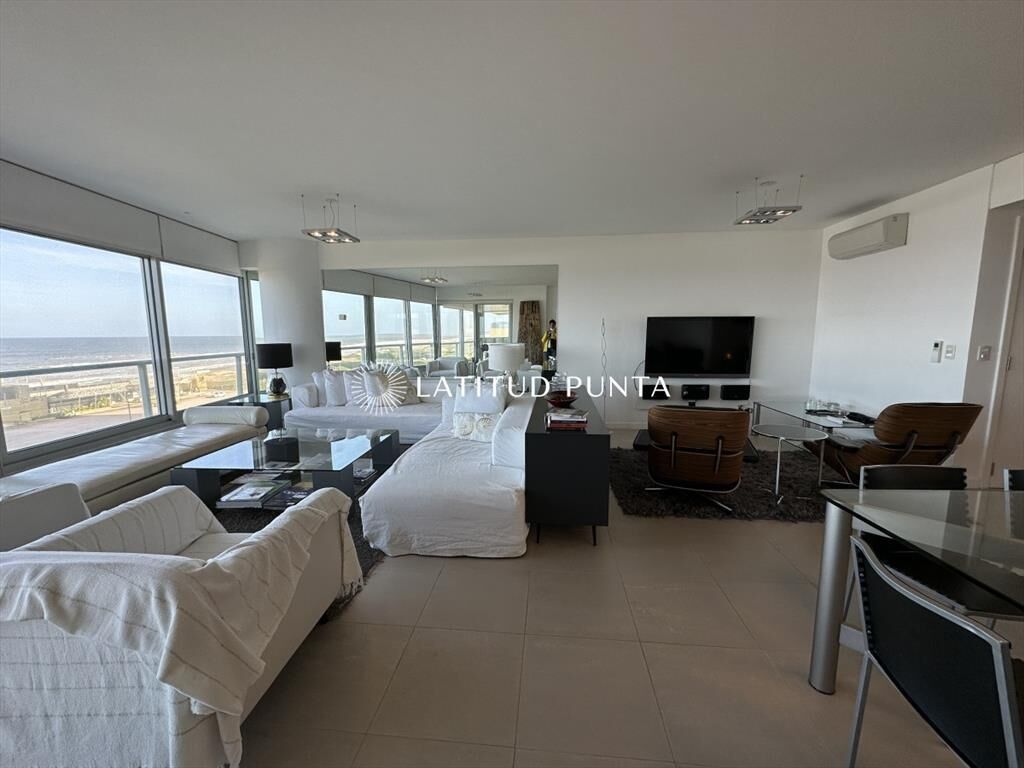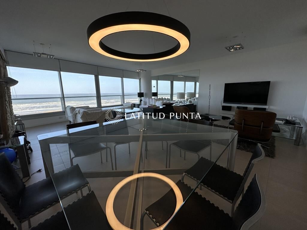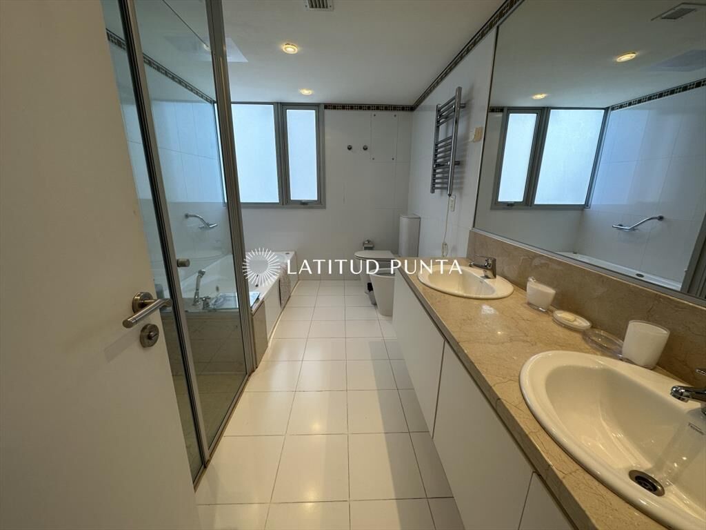 Excelente apartamento esquinero en Le Parc. Amplio living-comedor con impactantes vistas al océano, 3 dormitorios en suite (3 baños completos más toilette), dependencia de servicio con baño, cocina definida. Amenities de primera categoría.