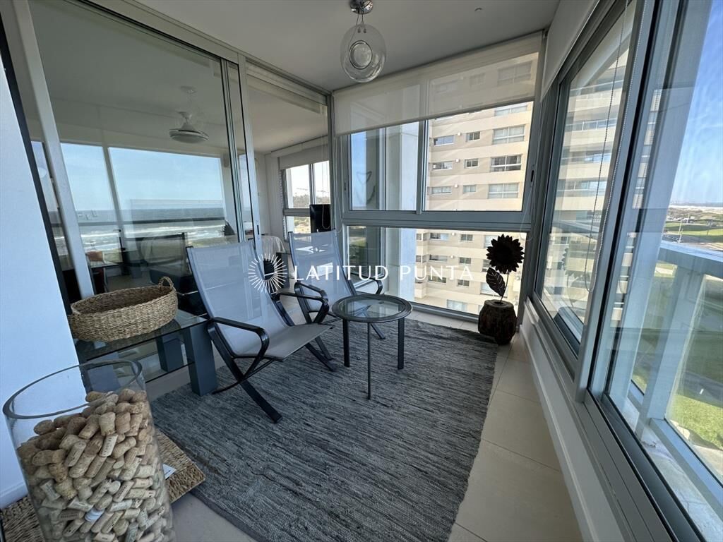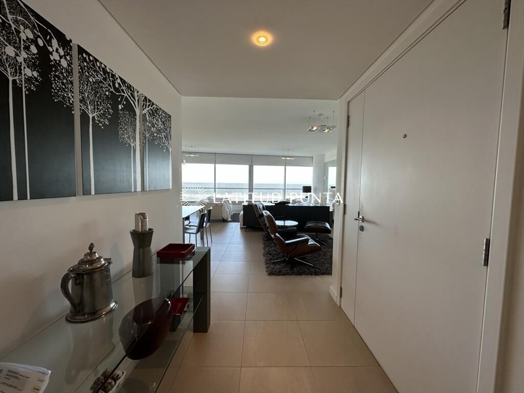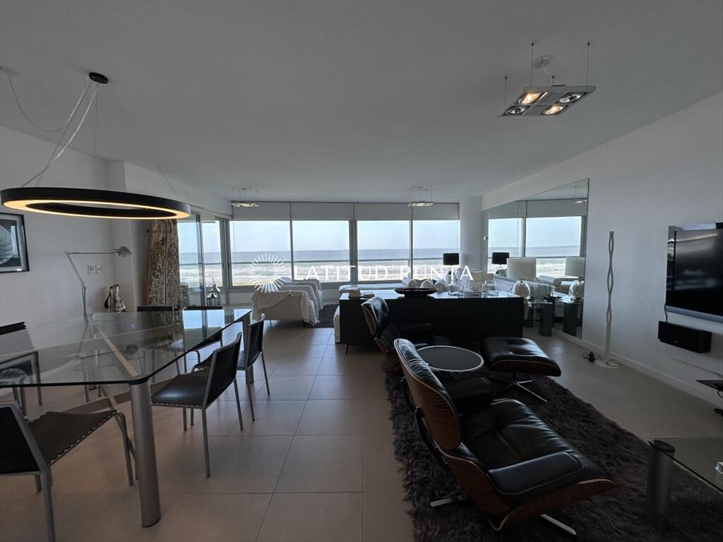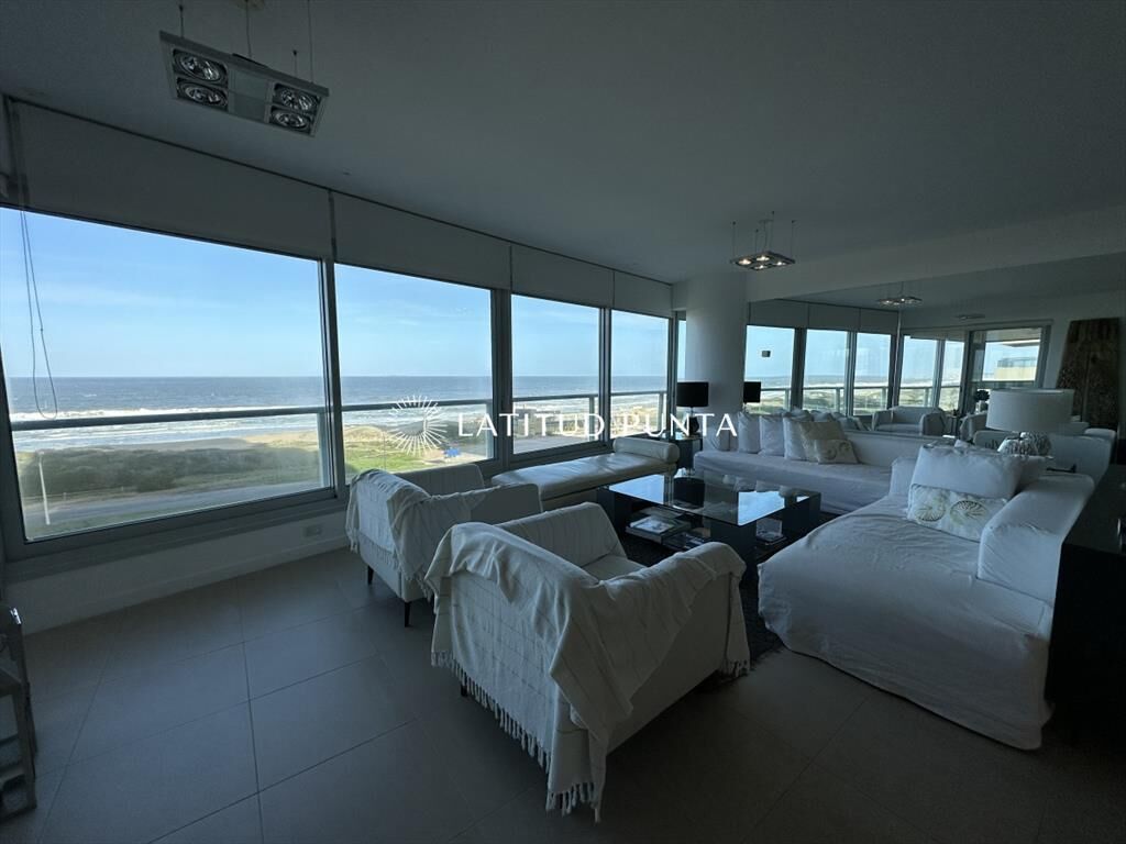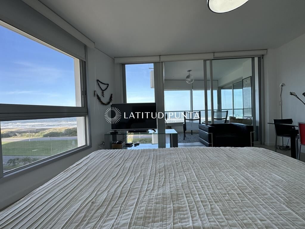 Excelente apartamento esquinero en Le Parc. Amplio living-comedor con impactantes vistas al océano, 3 dormitorios en suite (3 baños completos más toilette), dependencia de servicio con baño, cocina definida. Amenities de primera categoría.