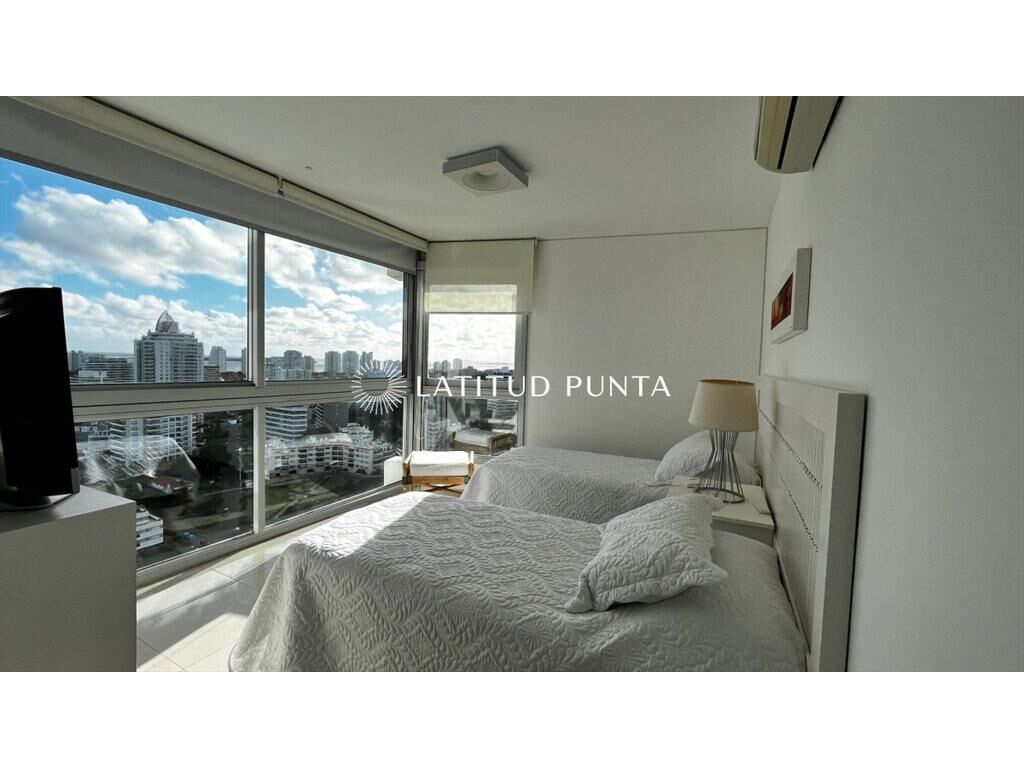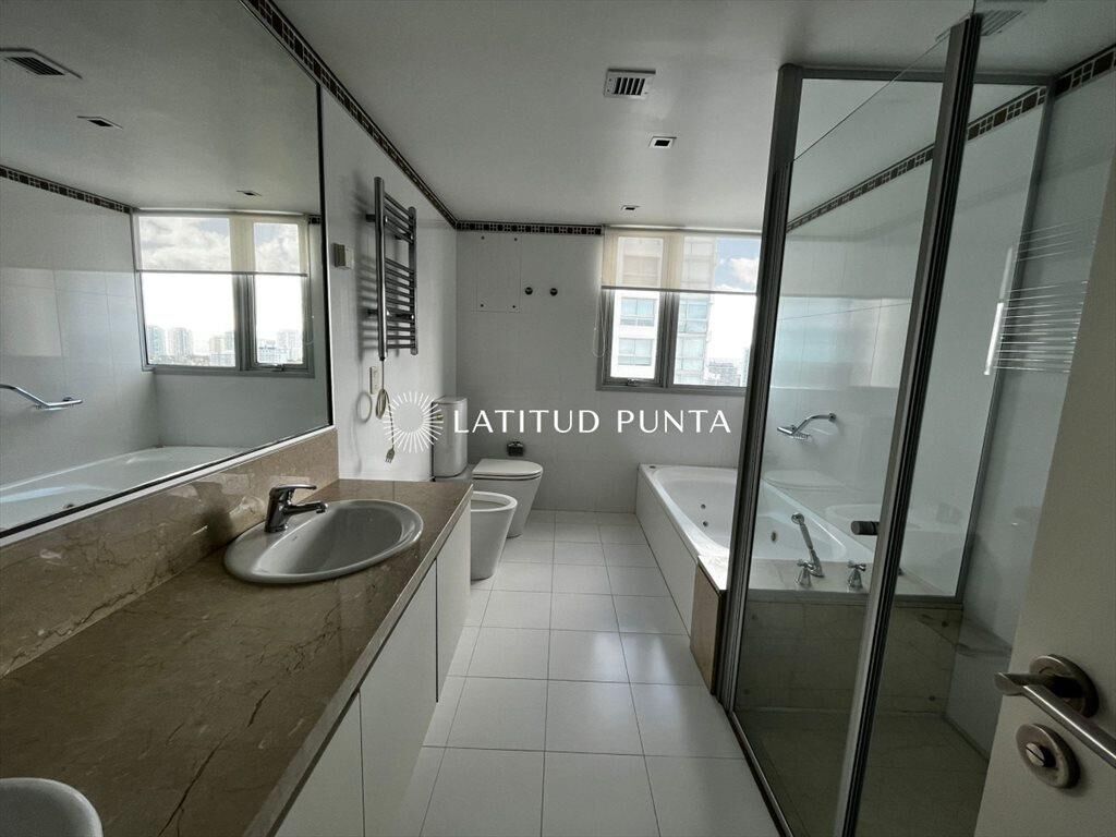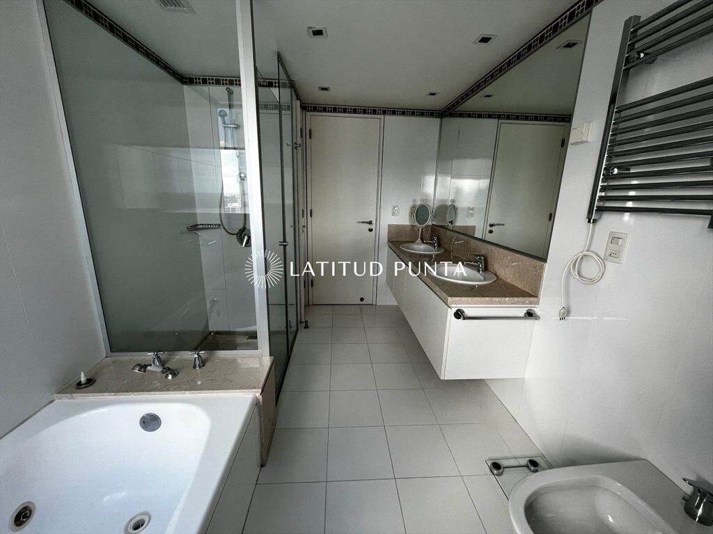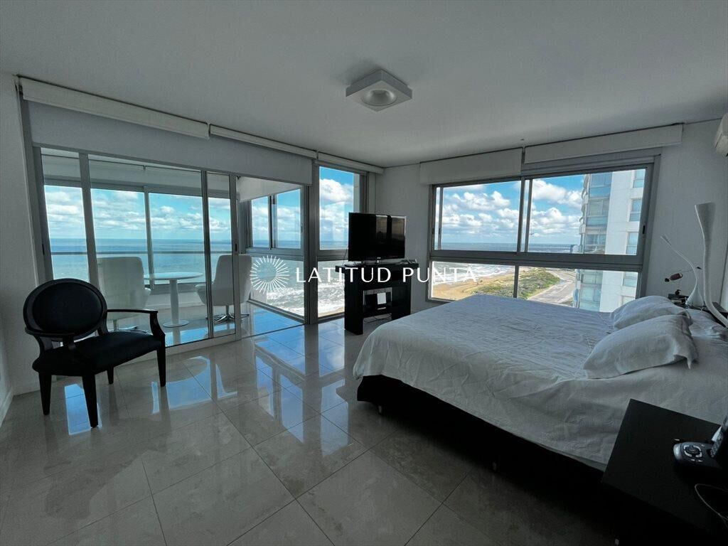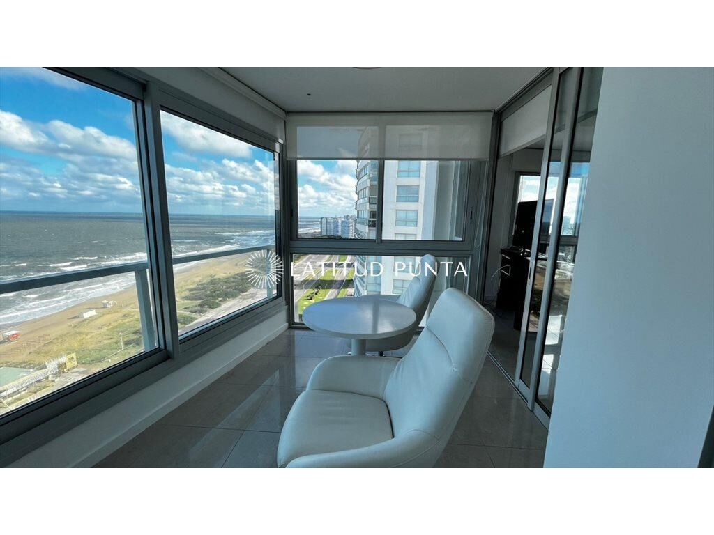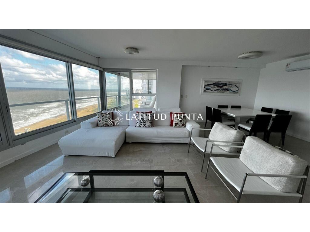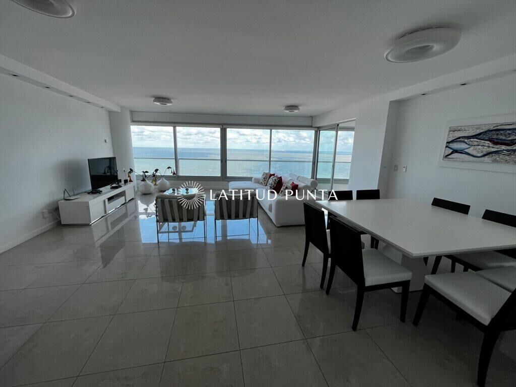 Excepcional planta esquinera con espectacular vista al mar desde todos los ambientes. Amplio living-comedor, balcón terraza con cerramiento, baño social, tres dormitorios en suite, amplia cocina con comedor diario, dependencia de servicio en suite, terraza lavadero, garaje para dos autos.