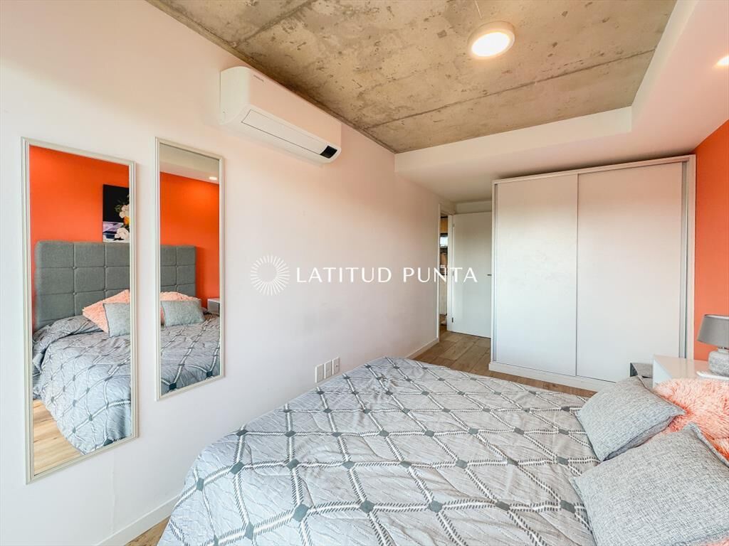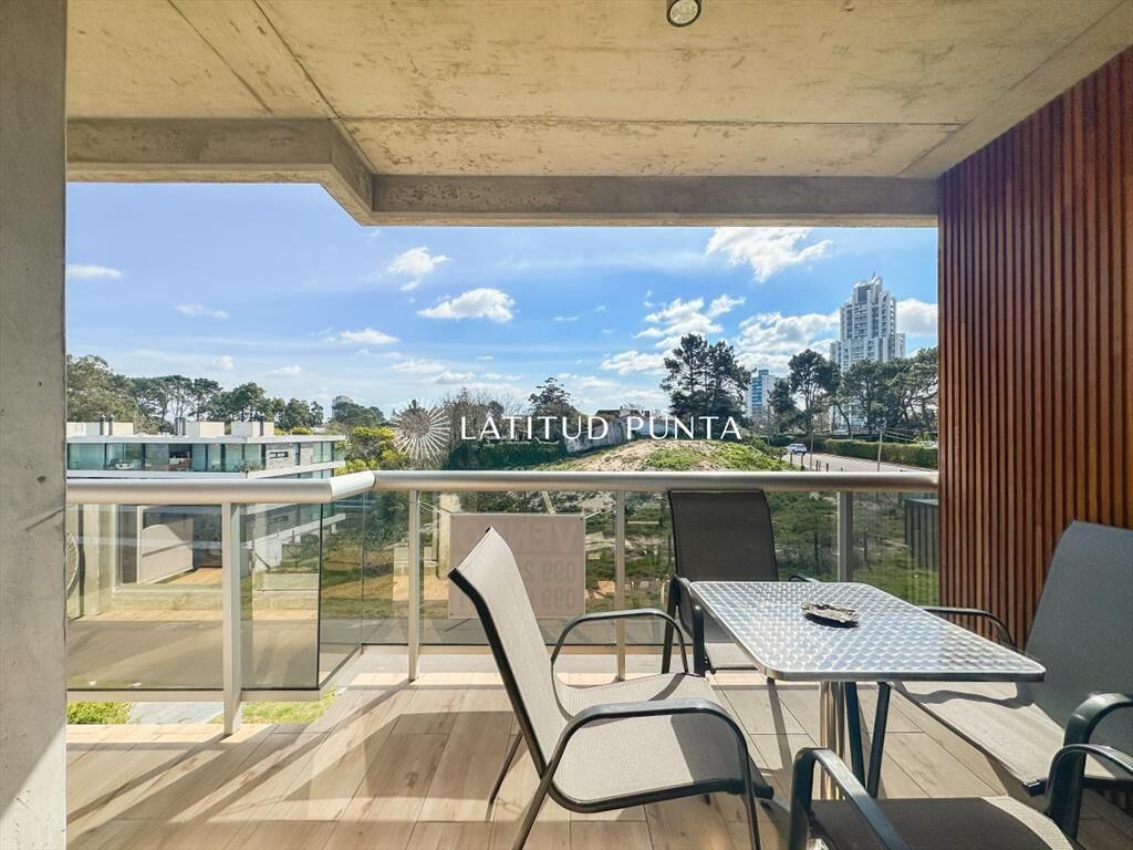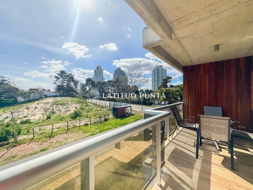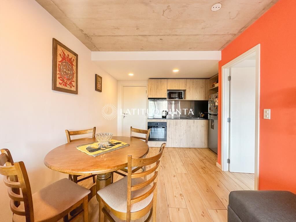 Apartamento a pocas cuadras de playa Mansa. Living-comedor con cocina integrada y salida a amplia terraza. Excelente orientación solar hacia el Norte. 1 dormitorio y 1 baño completo en suite. Garage en subsuelo. Edificio con recepción, piscinas exteriores climatizadas en verano, gym, barbacoa en la azotea, lavadero, playground y playroom.
