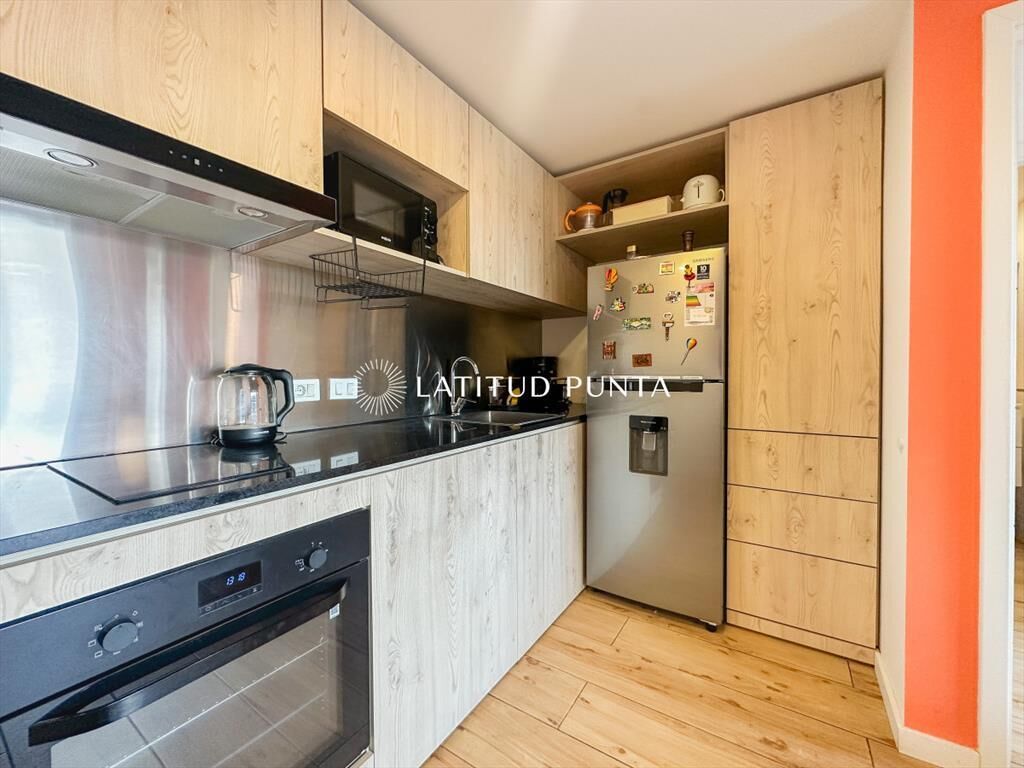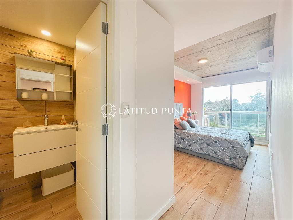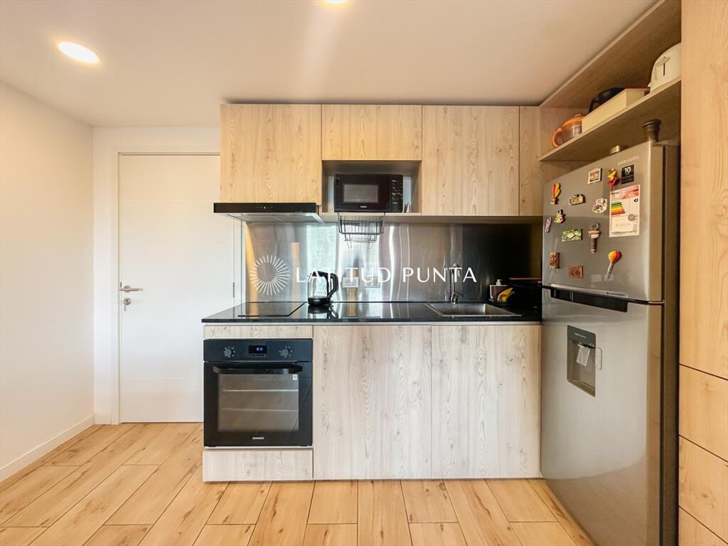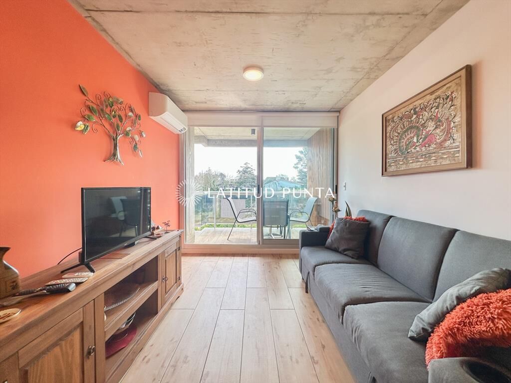 Apartamento a pocas cuadras de playa Mansa. Living-comedor con cocina integrada y salida a amplia terraza. Excelente orientación solar hacia el Norte. 1 dormitorio y 1 baño completo en suite. Garage en subsuelo. Edificio con recepción, piscinas exteriores climatizadas en verano, gym, barbacoa en la azotea, lavadero, playground y playroom.
