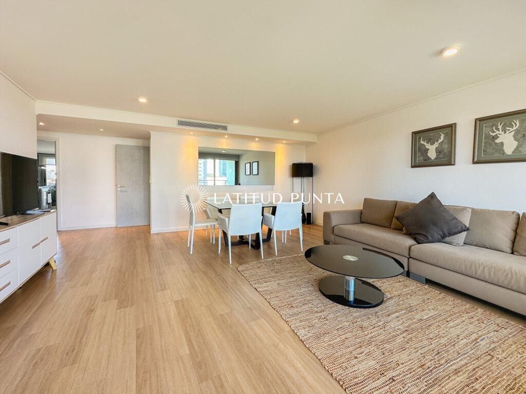 Amplio departamento a pasitos de playa Mansa. Living-comedor con terraza y cocina definida. 2 dormitorios en suite, 2 baños completos más toilette. Edificio moderno con amenities de primera categoría.