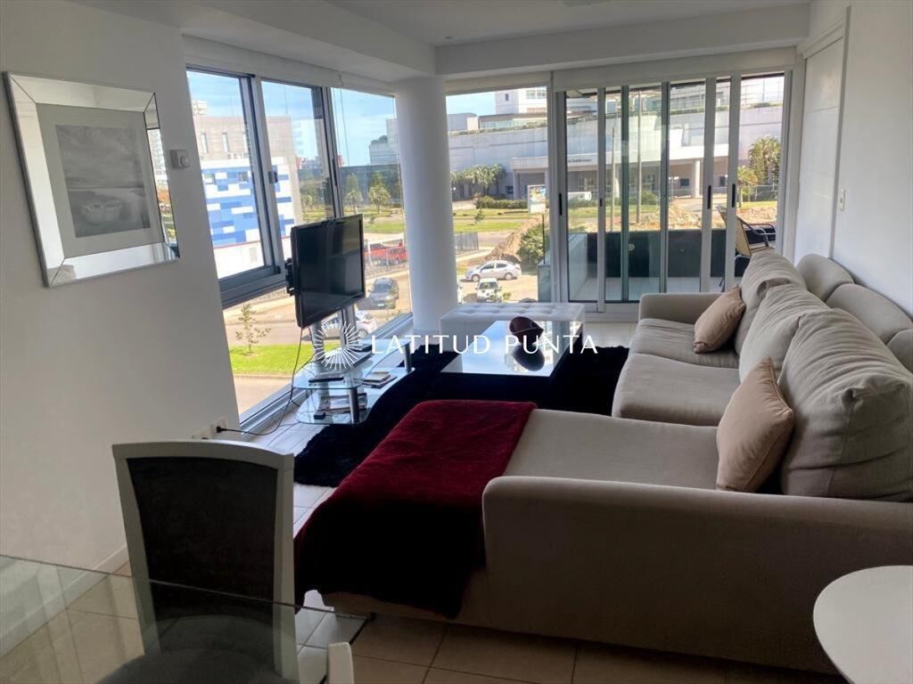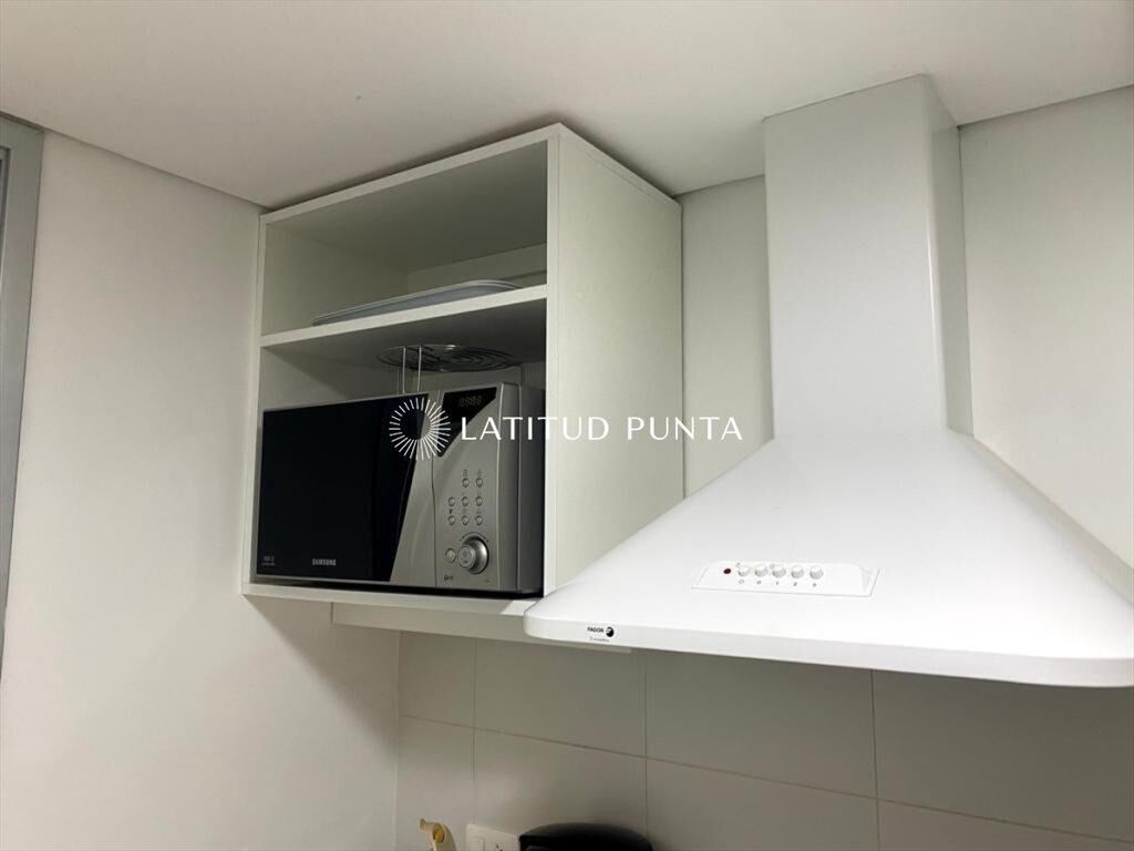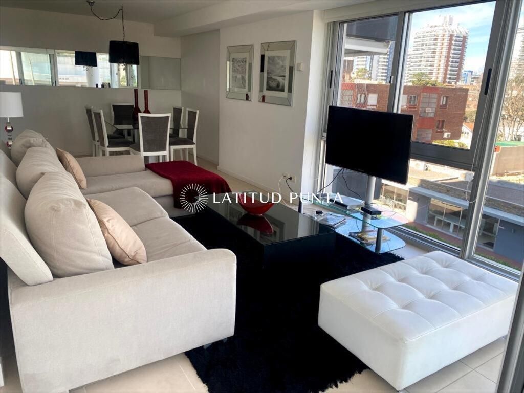 Apartamento esquinero, con linda terraza. Cuenta con living-comedor, cocina definida, 3 dormitorios (principal en suite), 2 baños completos más toilette. El tercer dormitorio tiene puerta corrediza hacia el living-comedor. Edificio con amenities completos, a pasos de playa Mansa y Enjoy Conrad.