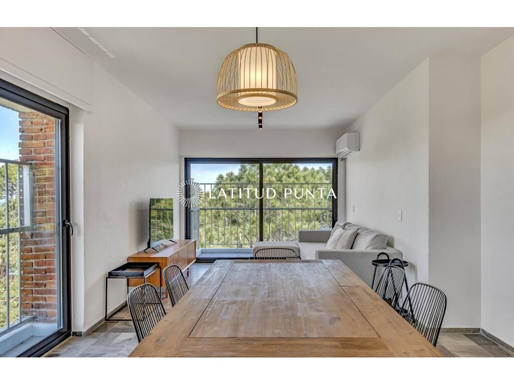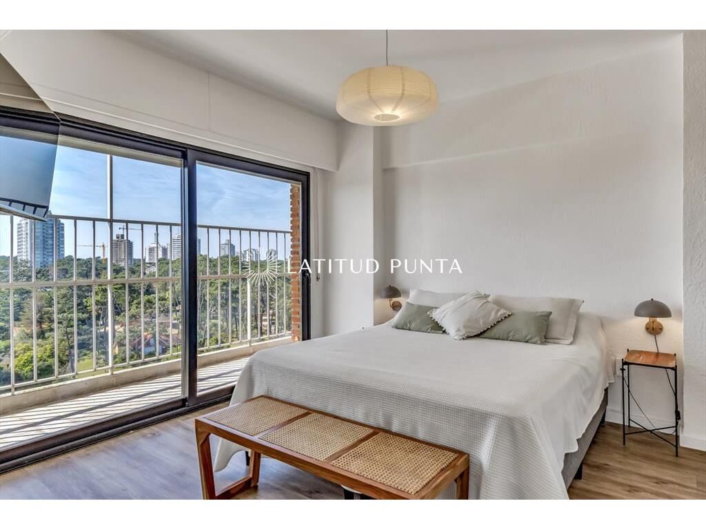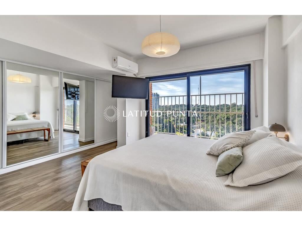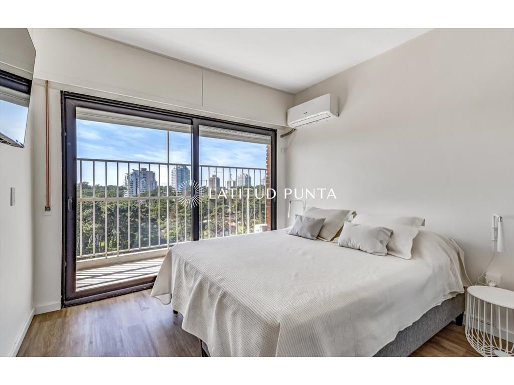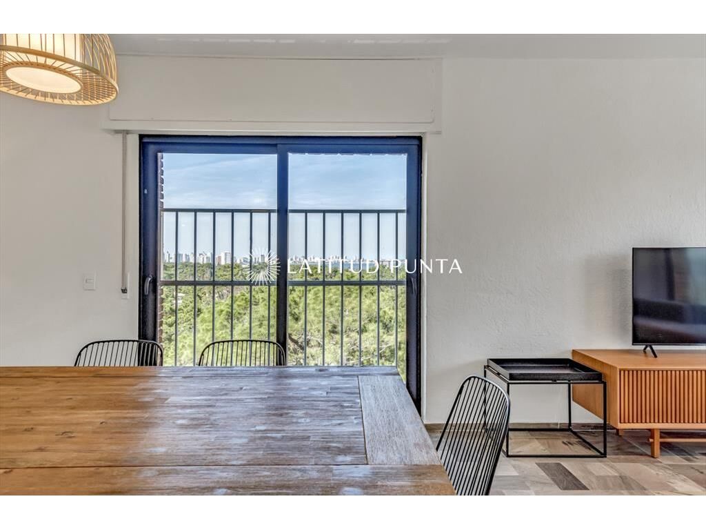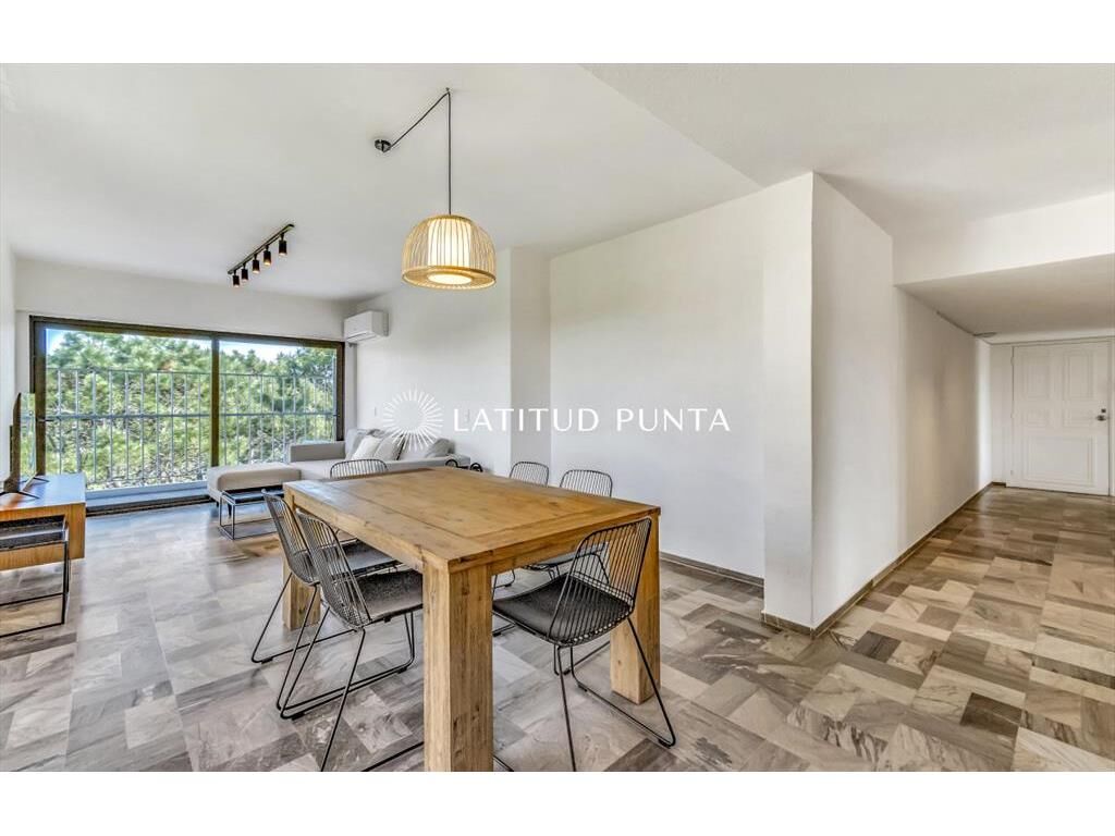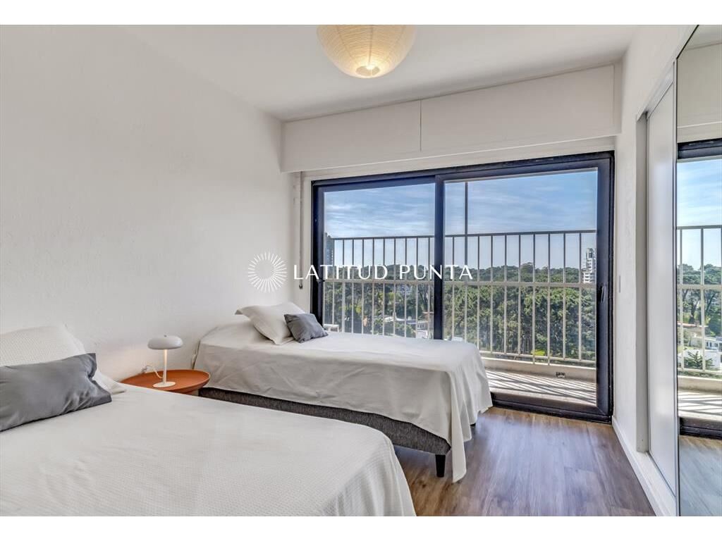 Apartamento reciclado en playa Mansa - complejo Arcobaleno, uno de los más buscados de Punta del Este por su excelente ubicación tanto de vivienda permanente como para vacacionar en familia o con amigos. Piso alto y con una excelente vista despejada al bosque y parcial al mar, full reciclado en general con todas las aberturas en DVH.