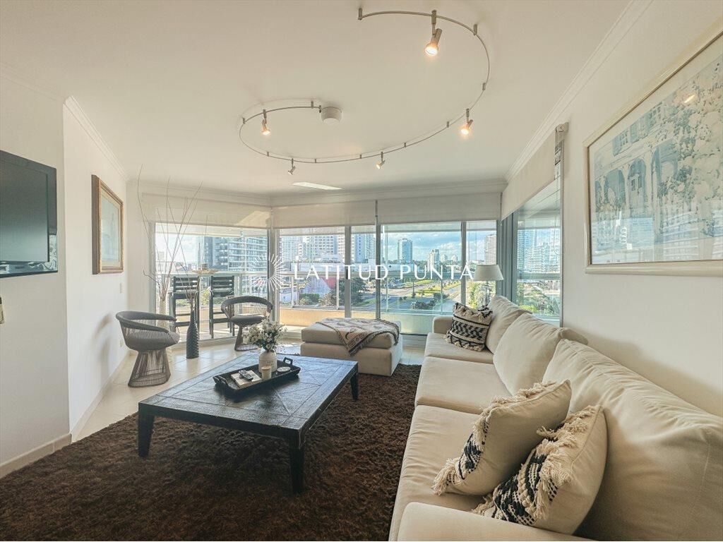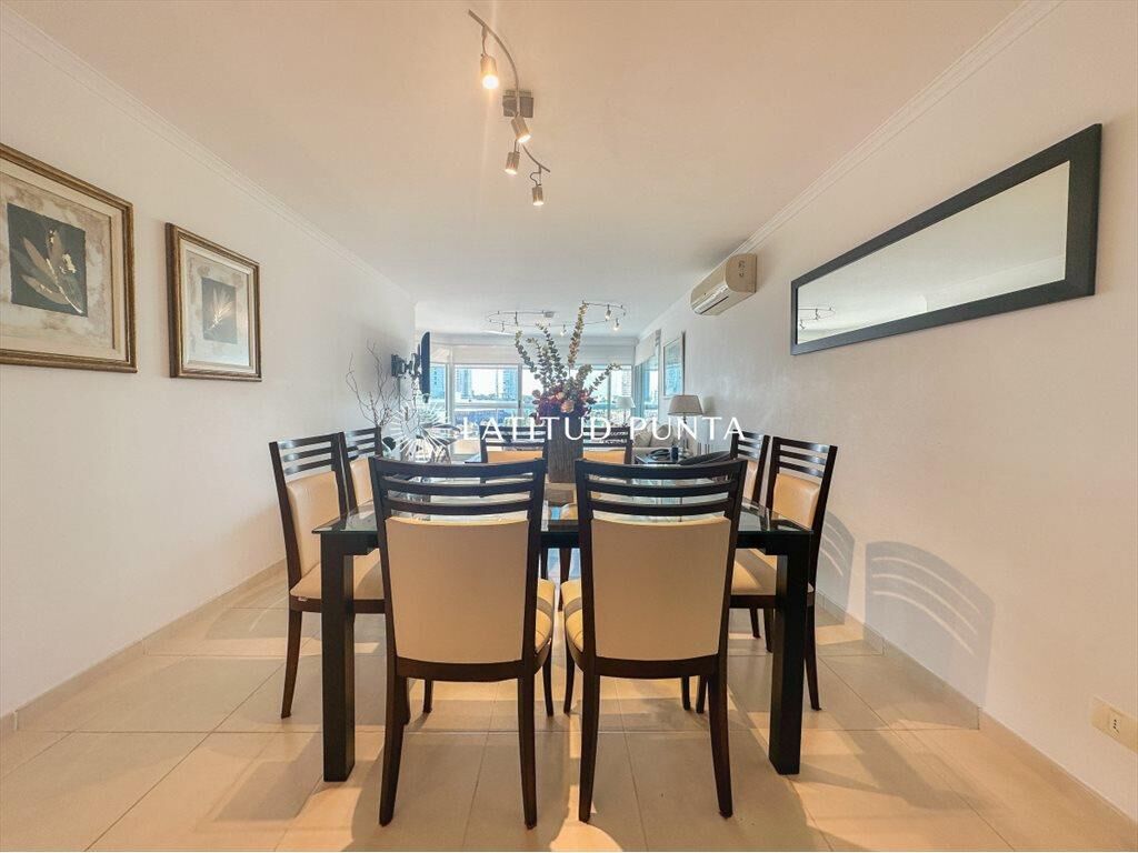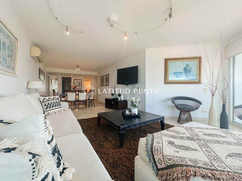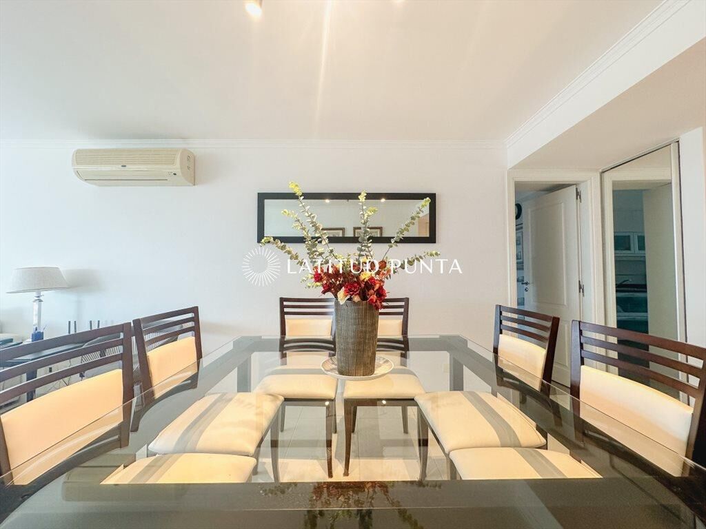 Apartamento excelentemente orientado, muy soleado y con vista parcial a la Mansa. Amplio living-comedor con salida a terraza con cerramiento y parrillero. 3 dormitorios (principal en suite con vestidor), 2 baños completos más toilette. Dependencia de servicio con baño. Garage en subsuelo. Amenities de primera categoría.