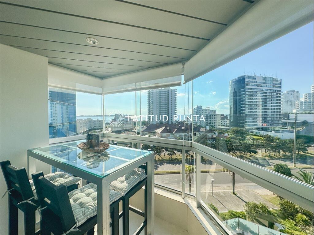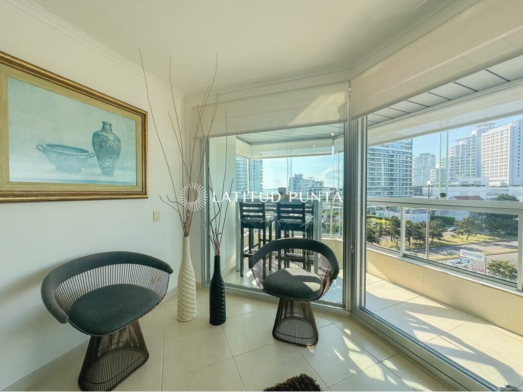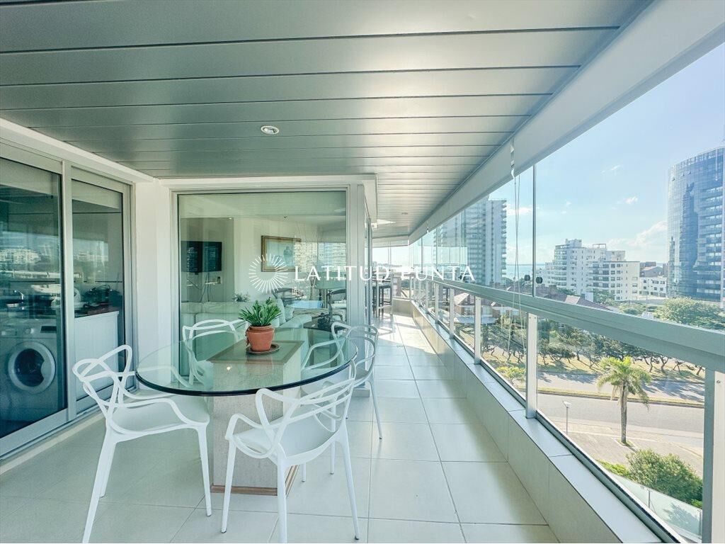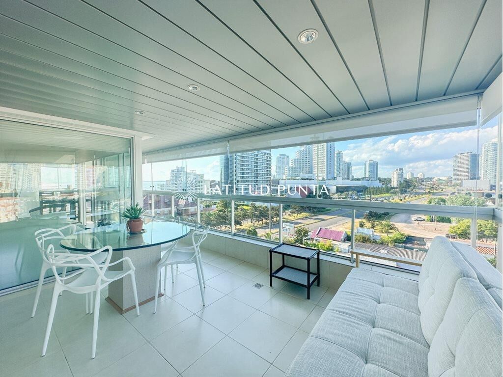 Apartamento excelentemente orientado, muy soleado y con vista parcial a la Mansa. Amplio living-comedor con salida a terraza con cerramiento y parrillero. 3 dormitorios (principal en suite con vestidor), 2 baños completos más toilette. Dependencia de servicio con baño. Garage en subsuelo. Amenities de primera categoría.