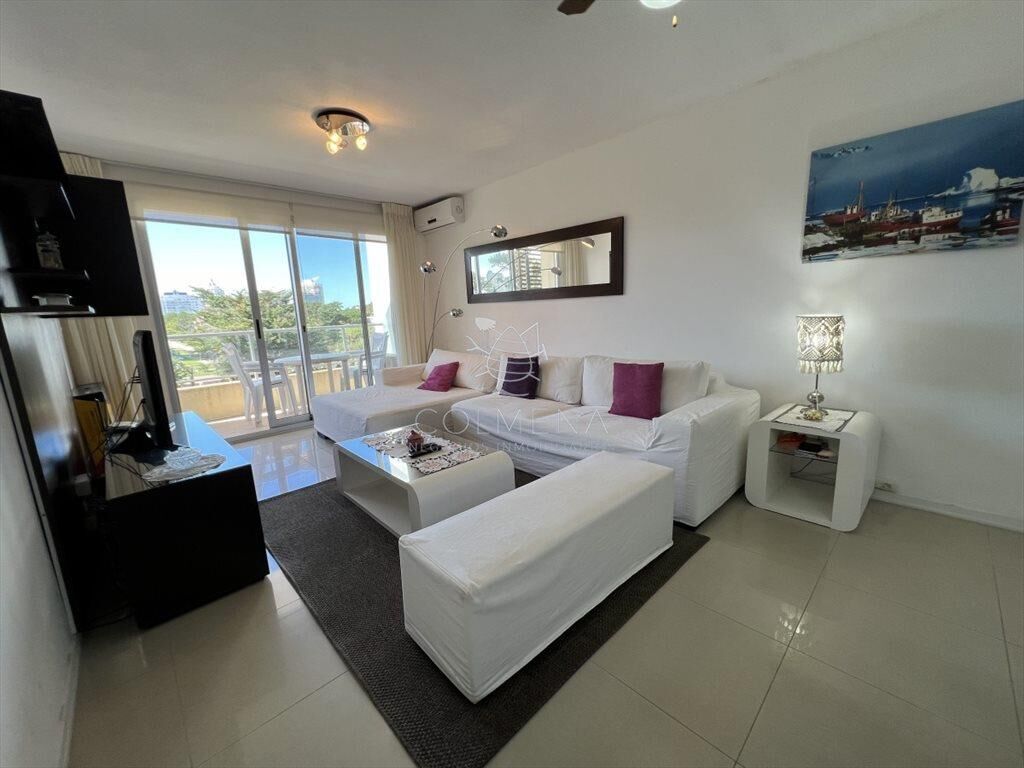 Venta en exclusividad inmobiliaria Address. Departamento de 2 dormitorios, 2 baños (1 en suite), living comedor, cocina independiente, amplio balcón, ingreso directo a terraza en piso superior, de uso exclusivo, con parrillero, pérgola y jacuzzi. Cochera techada. El apartamento se entrega con mobiliario grande y equipamiento básico. El edificio se encuentra en inmejorable ubicación, a metros de la mejor zona de playa mansa. Edificio con servicios (piscina exterior, parrilleros equipados de usos común, gimnasio, sauna, sala de juegos, pequeña piscina interior climatizada, wifi, portería). Consulte con nuestros asesores.