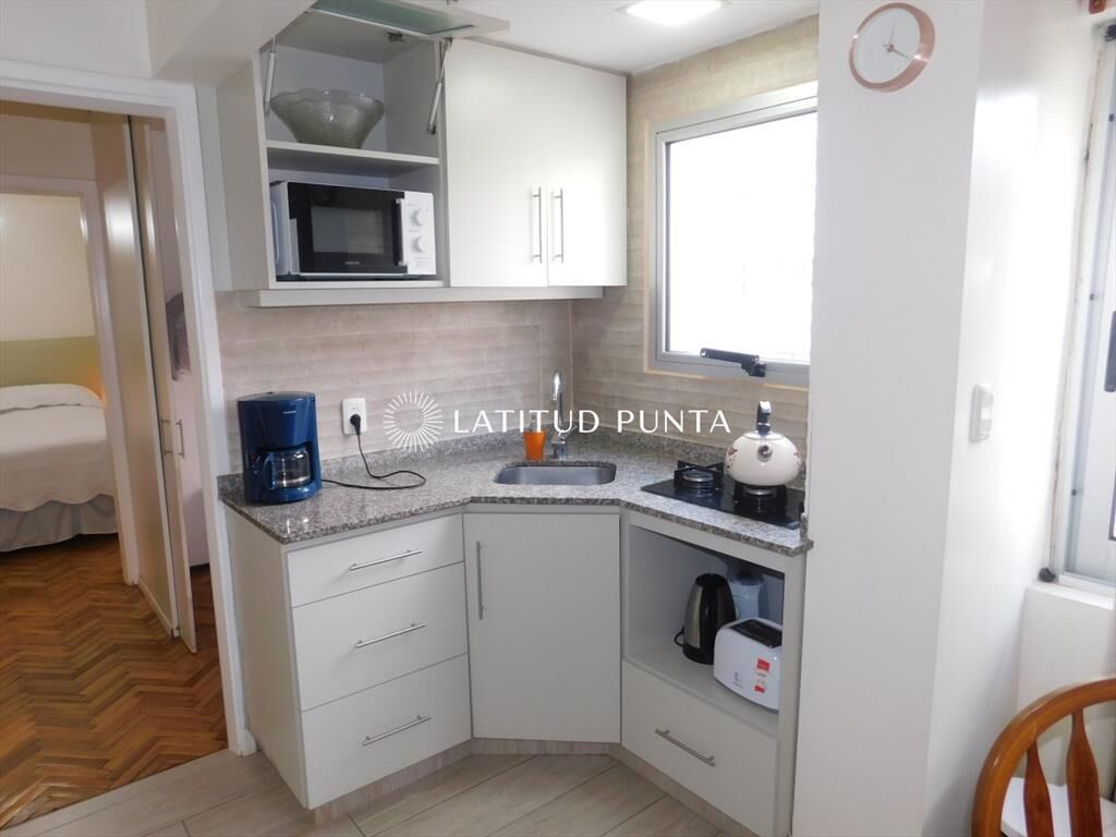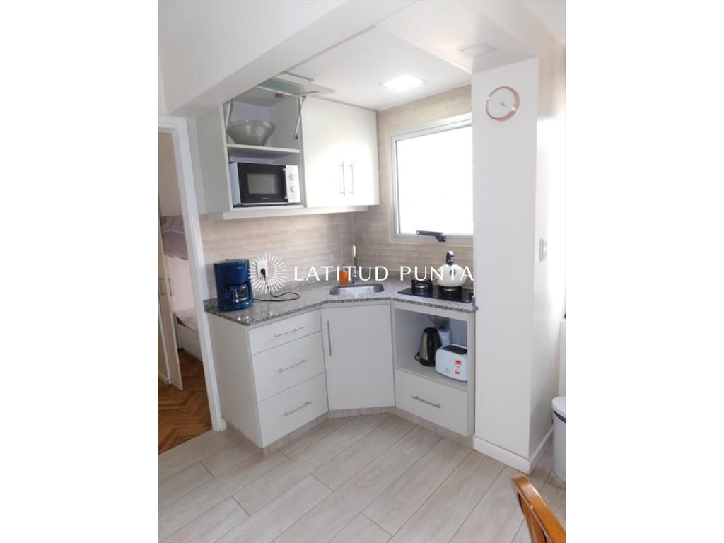 Muy lindo apartamento a pasos de playa El Emir. Living-comedor, se integró el balcón con parrillero, dormitorio y medio, 1 baño, estacionamiento. Expensas accesibles.