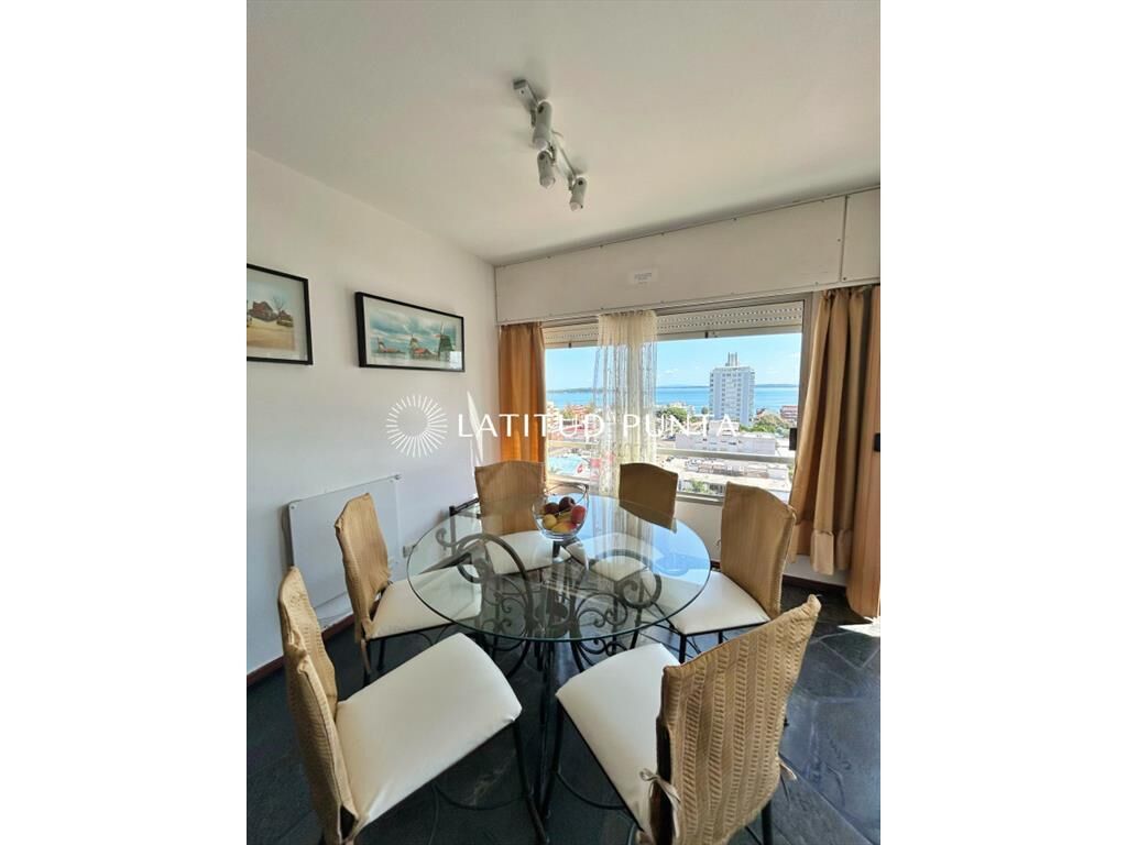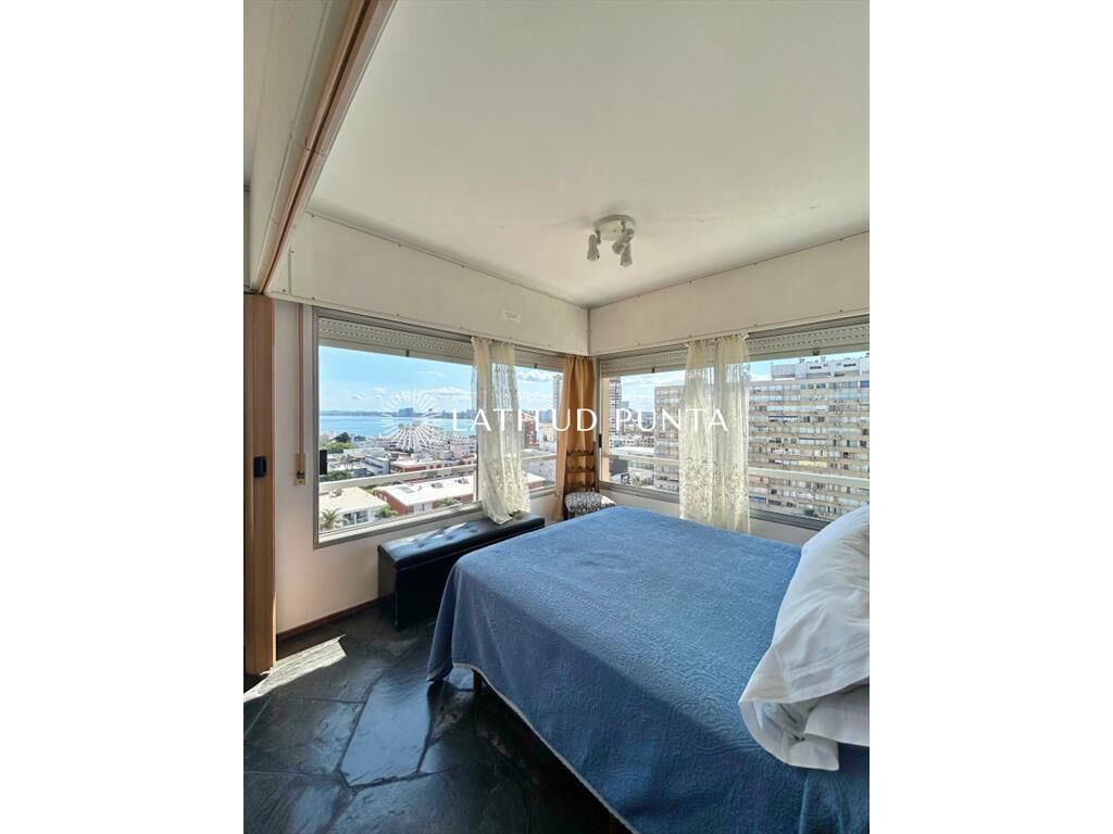 Amplio departamento en el corazón de la Península, edificio de excelente construcción con piscina y más servicios. 2 dormitorios y medio, 2 baños, piso alto con vista al mar.