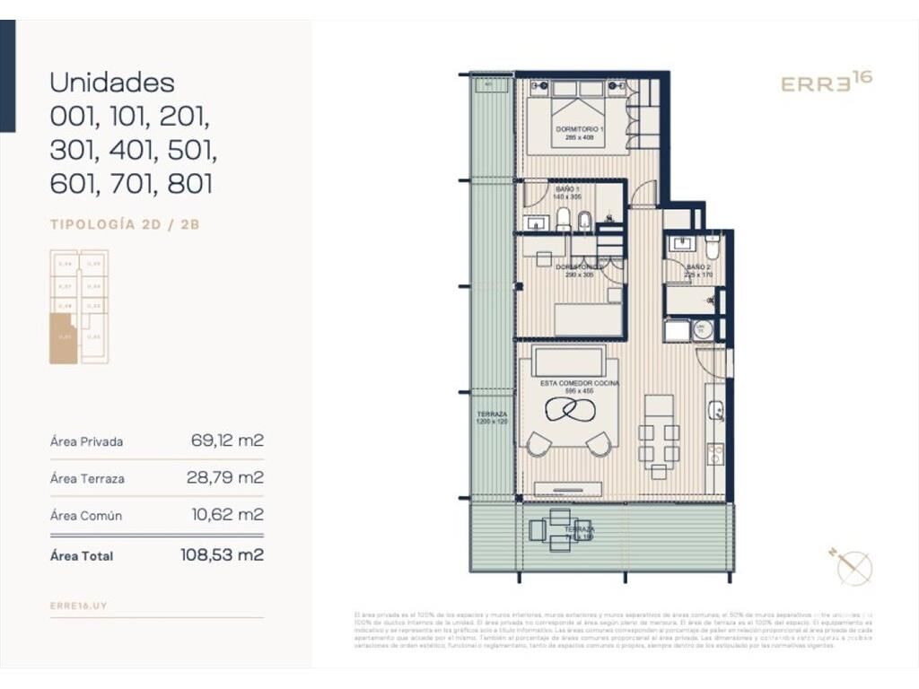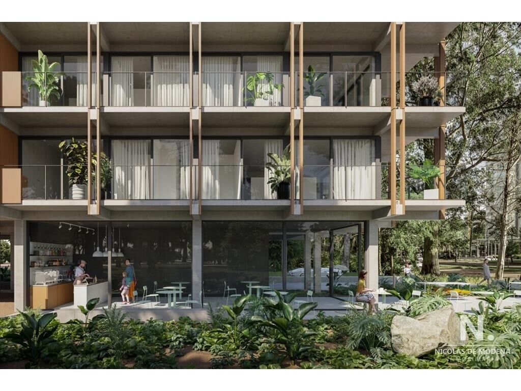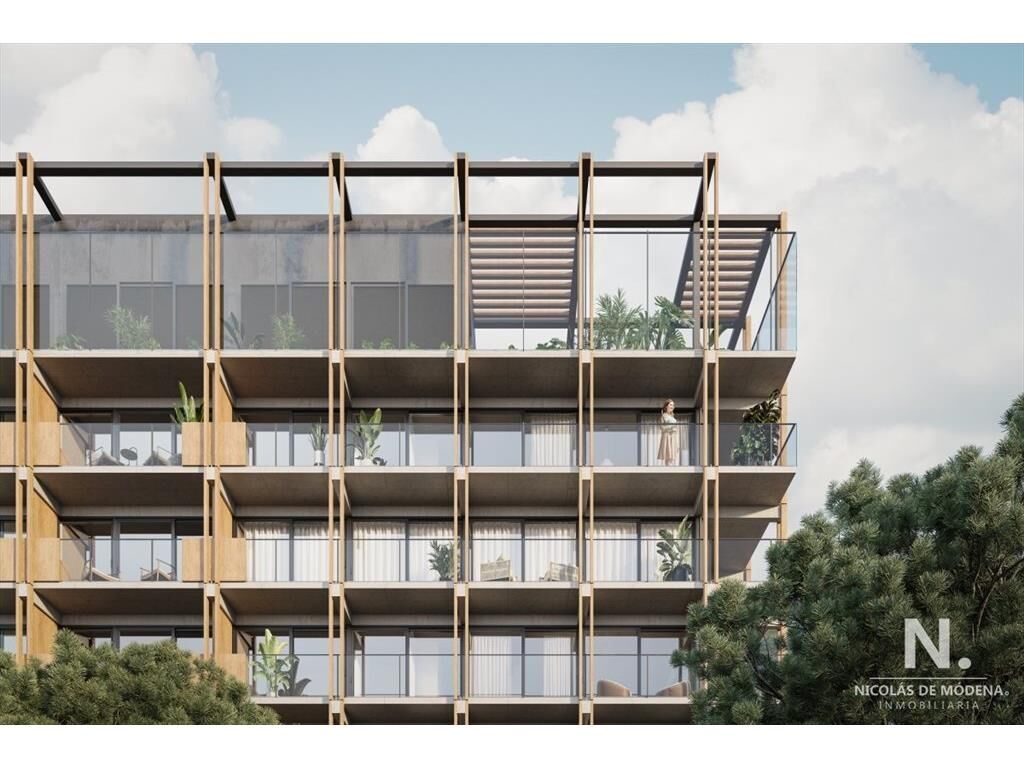 Edificio de 68 unidades de apartamentos, con tipologías monoambientes, de 1 y 2 dormitorios. Con terraza propia y cubierta,