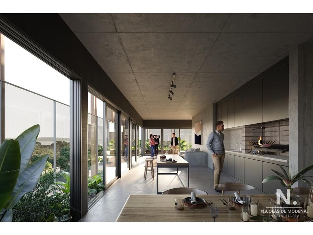 Pisos de hormigón afinado en living, comedor, cocina y dormitorios, vidrios DVH (doble vidriado hermético) en todas las fachadas.