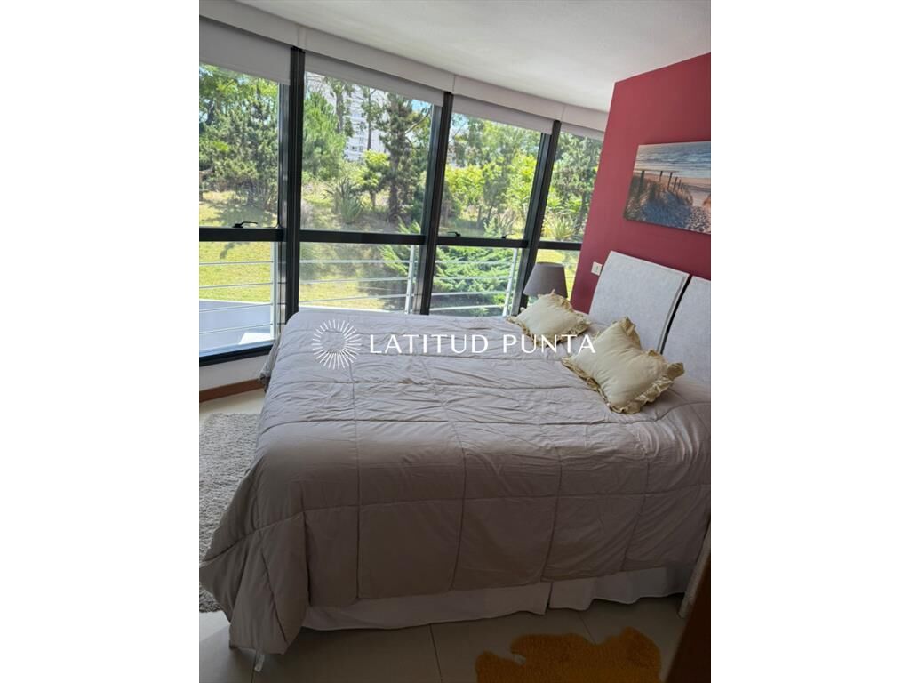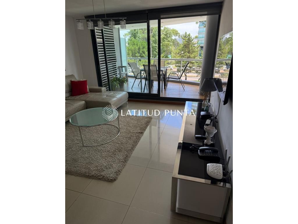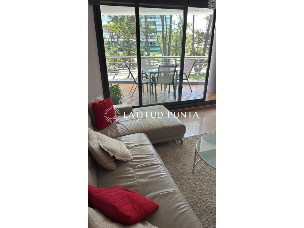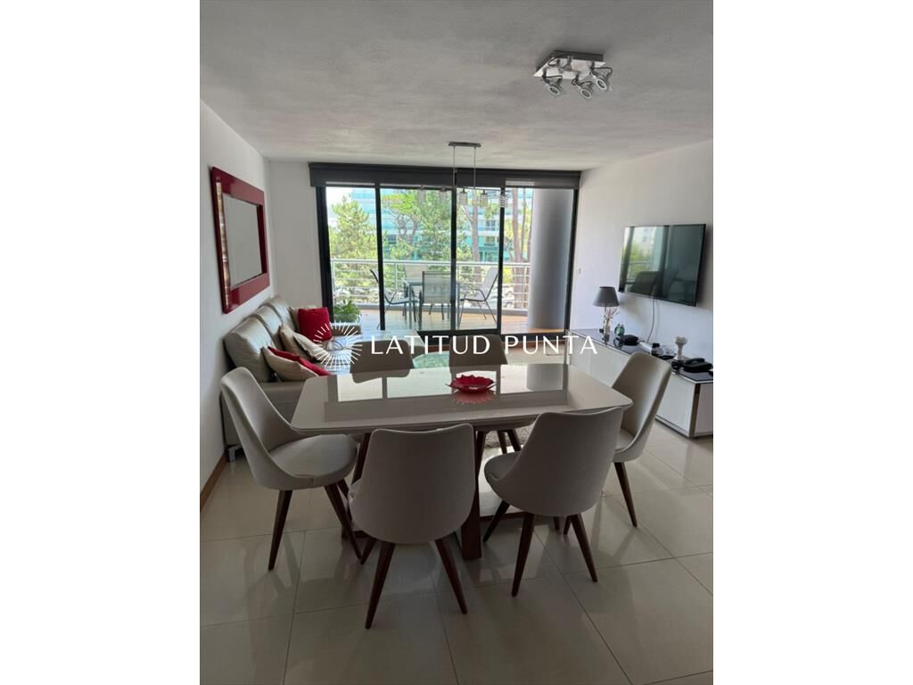 Amplio departamento sobre Av Roosevelt a pasitos de Punta Shopping. Living-comedor con cocina integrada y salida a terraza. 2 dormitorios, principal en suite con vestidor, 2 baños completos más toilette. Edificio con servicio de mucamas, recepción 24hs, piscina exterior, barbacoa de uso común, gimnasio, jacuzzi, lavadero, entre otros.