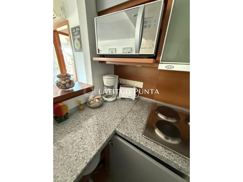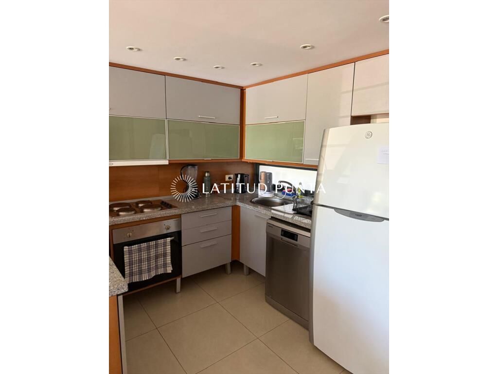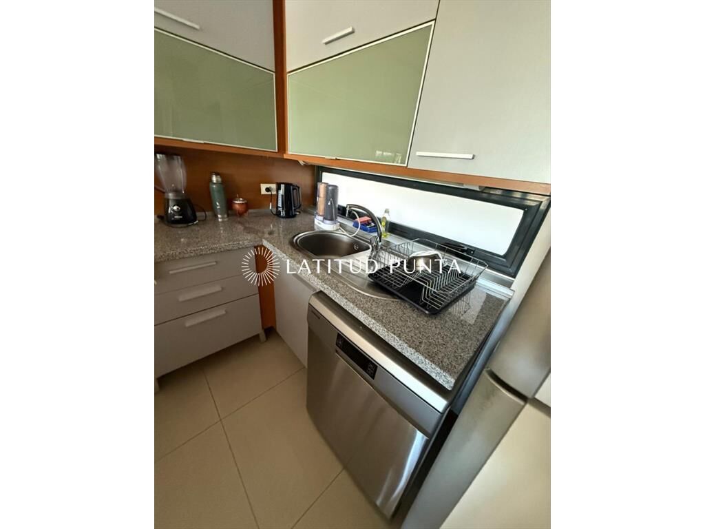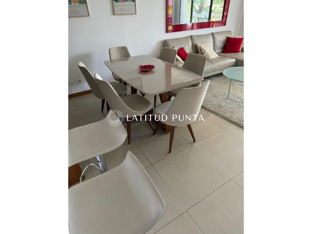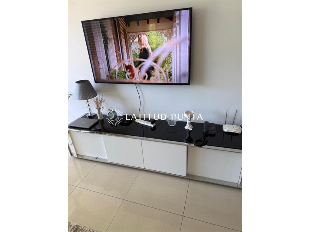Amplio departamento sobre Av Roosevelt a pasitos de Punta Shopping. Living-comedor con cocina integrada y salida a terraza. 2 dormitorios, principal en suite con vestidor, 2 baños completos más toilette. Edificio con servicio de mucamas, recepción 24hs, piscina exterior, barbacoa de uso común, gimnasio, jacuzzi, lavadero, entre otros.