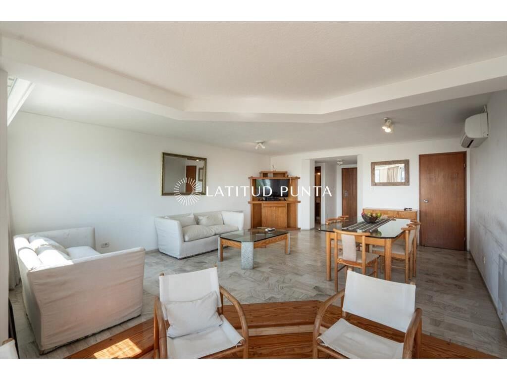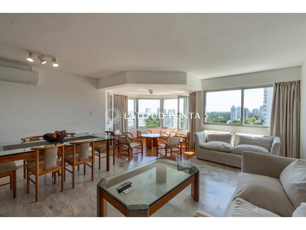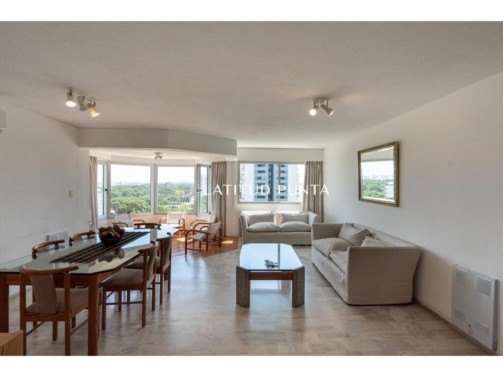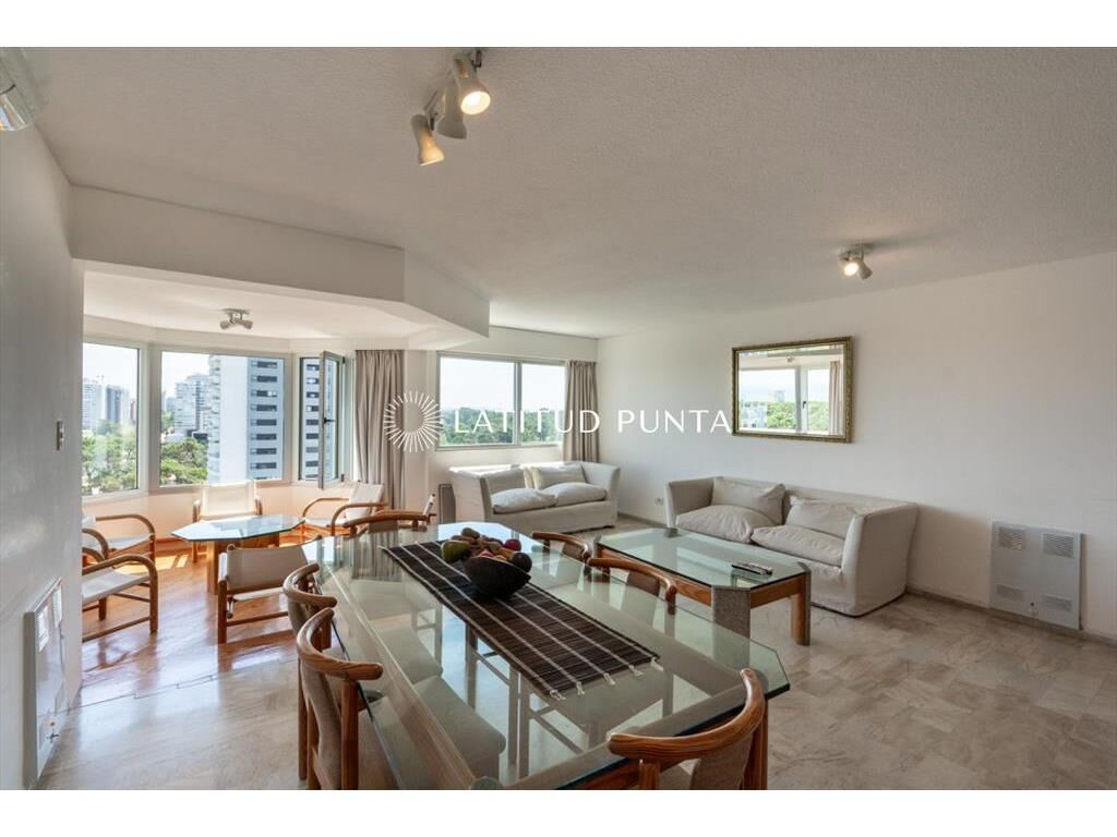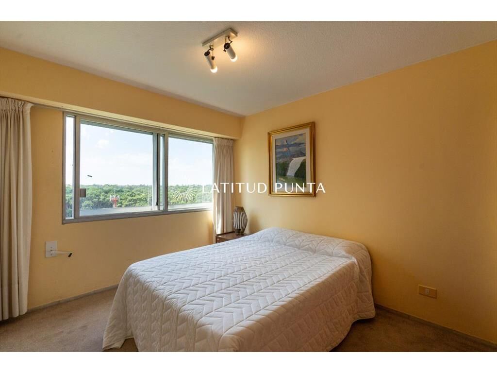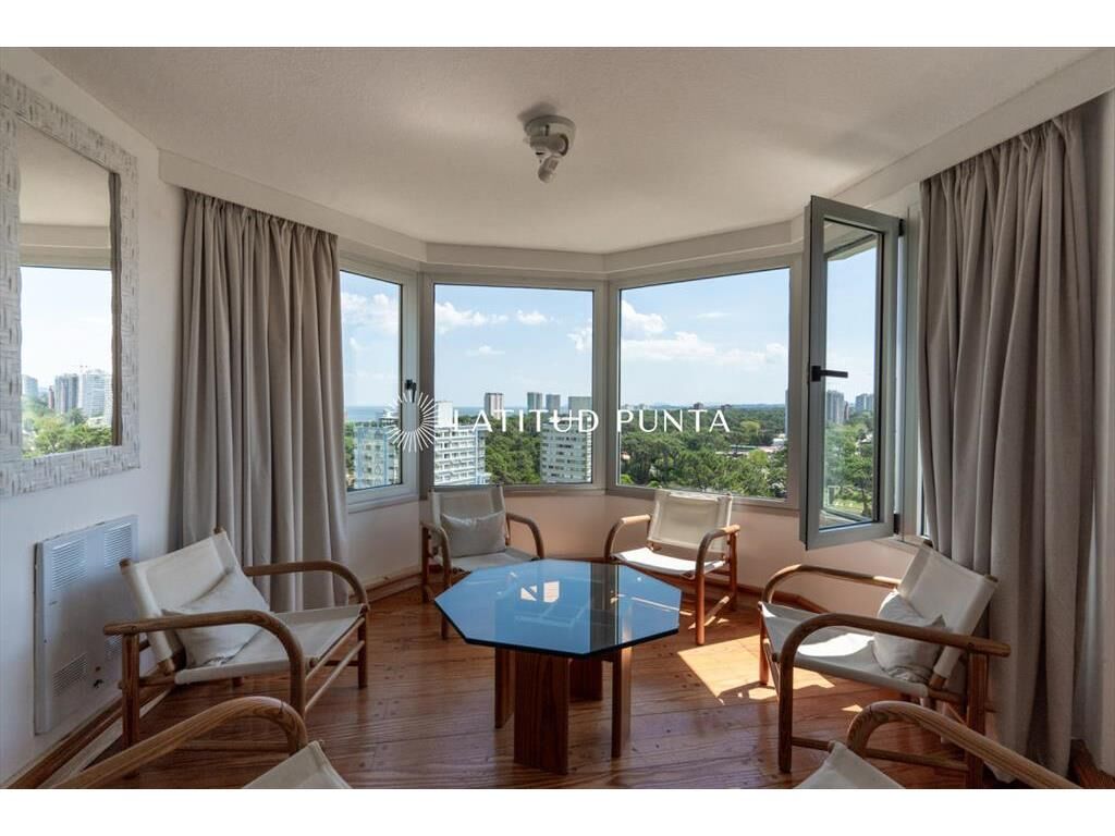 Muy lindo apartamento y bien mantenido, piso alto con vista al mar. Cuenta con tres dormitorios, dos baños (uno en suite), cocina, balcón cerrado, amplio living-comedor. Garage y baulera. Servicio de mucamas, piscina exterior, piscina interior, gimnasio, microcine, saunas y más.