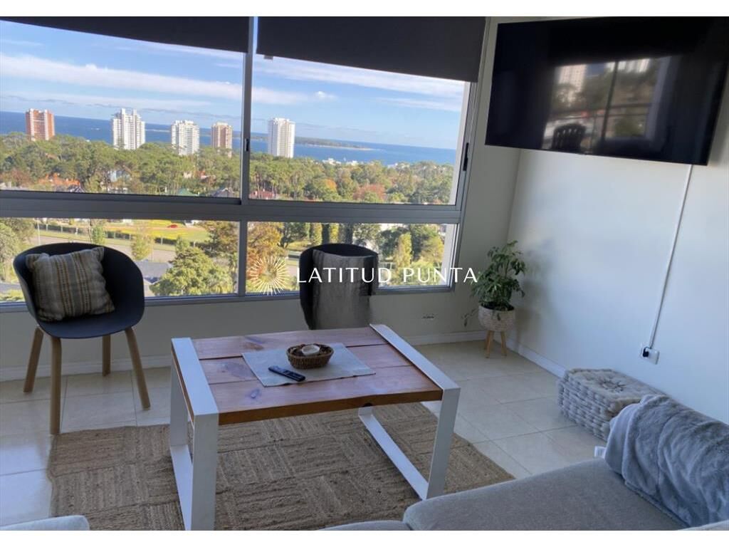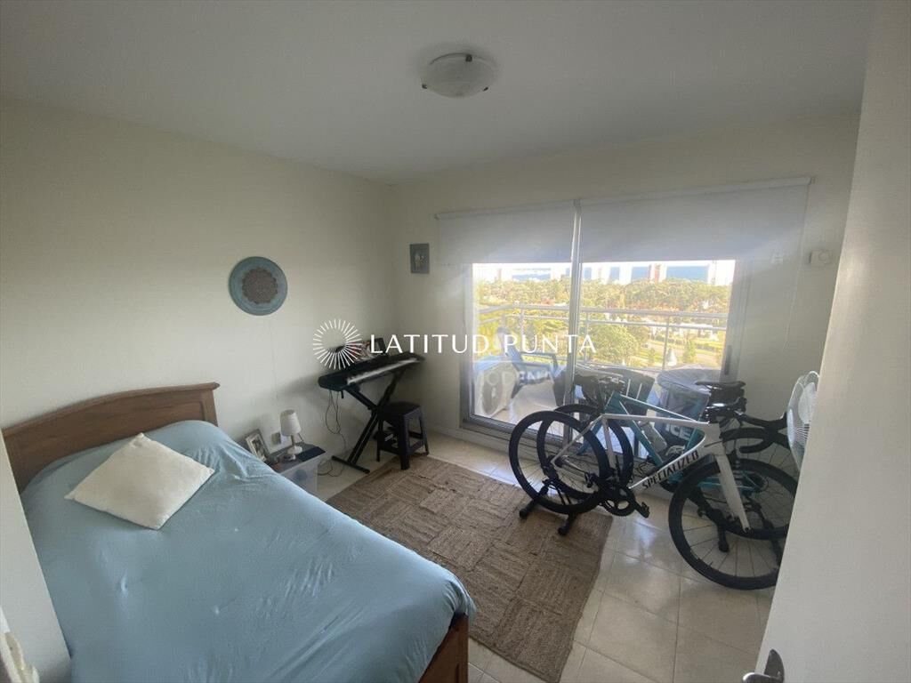 Apartamento en Roosevelt, Punta del Este. Piso alto con hermosas vistas a la Mansa. Living-comedor con balcón, cocina definida, 3 dormitorios y 2 baños completos. Loza radiante. Edificio con recepción 24hs, gimnasio, parrillero, piscina exterior. Se vende sin muebles.