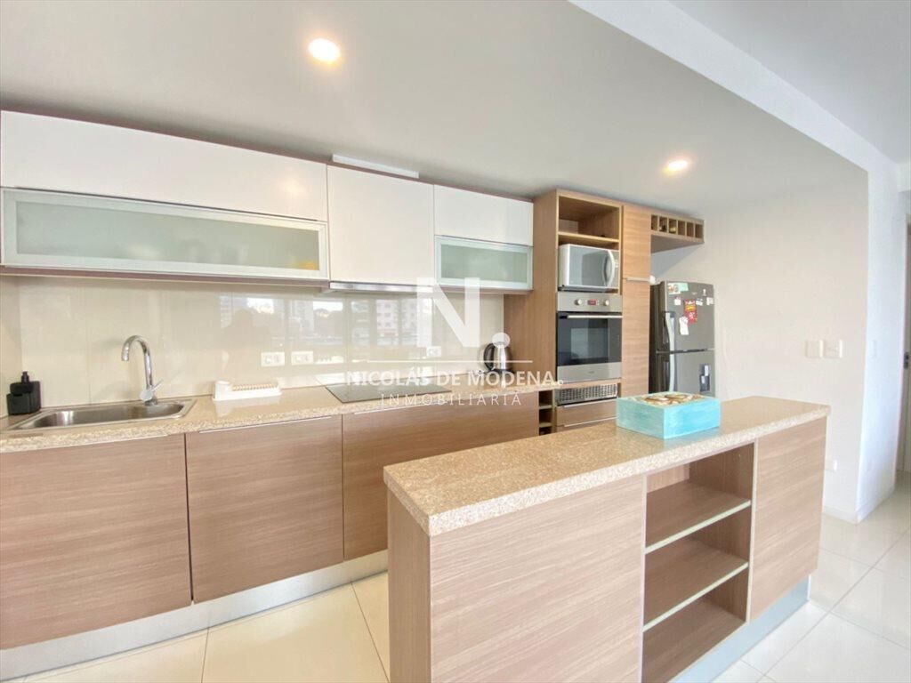 La cocina está integrada al espacio de estar, creando un ambiente abierto y social. Está equipada con anafe, microondas, y horno, brindando todas las facilidades necesarias para la preparación de comidas. El área de estar incluye un living y un comedor, creando un espacio espacioso y cómodo para el descanso con inigualable iluminacion.
