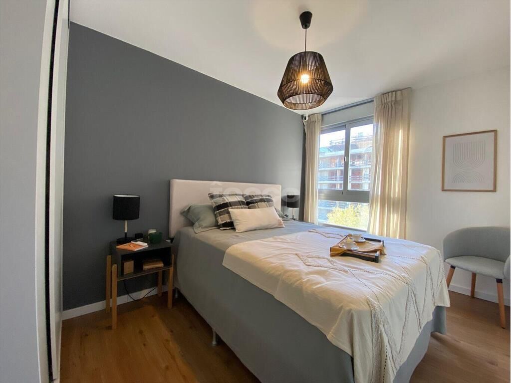 Este cómodo apartamento de 2 dormitorios ofrece un diseño práctico y moderno, con cocina integrada y un baño ubicado al centro, lo que permite una distribución funcional de los espacios.