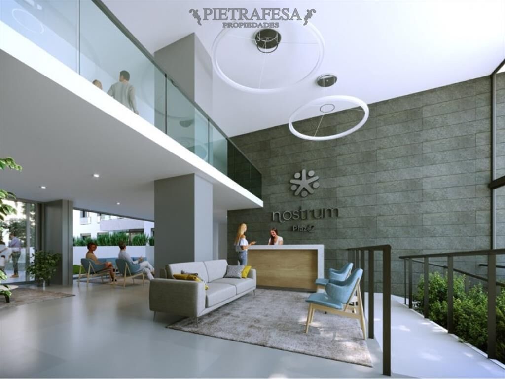 -Lobby de doble altura con mobiliario contemporáneo.