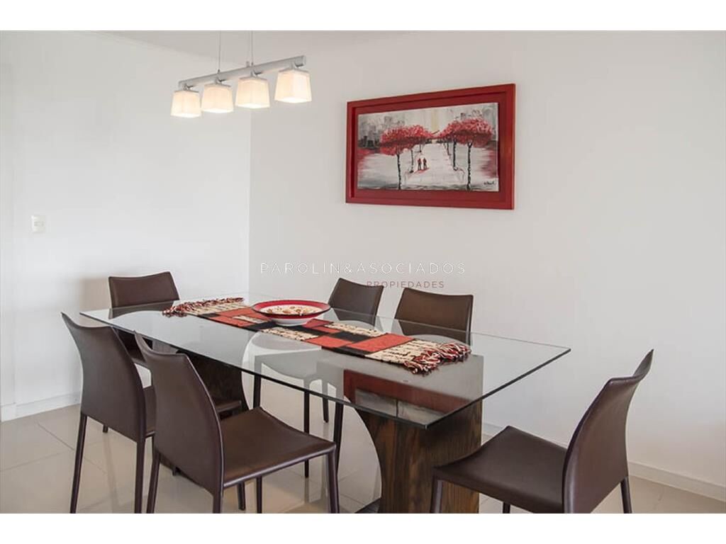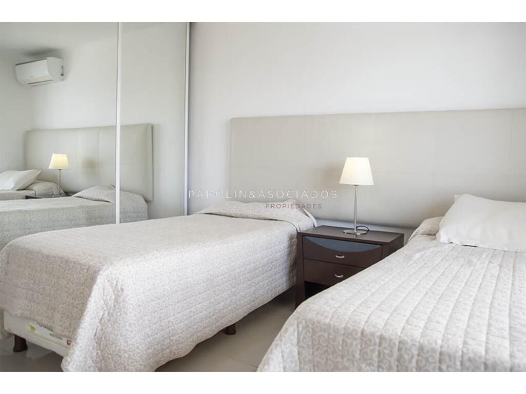 Características del Apartamento- 2 dormitorios- Capacidad para 3 personas- 4 camas- Cocina amplia- Living- Comedor- Living comedor- Superficie: 91 m Equipamiento- Lavadero- Anafe- Heladera- Sistema de audio- Cafetera- Aire acondicionado- Horno- BañeraAmenities- Sauna- Lobby- Vestuarios- Ascensor- Piscina de nado- Piscina climatizada- Piscina exterior- Gimnasio- Wi-Fi- Servicio de cadete- Servicio de mucama- Piscina para niños- Barbacoa- Mantenimiento- GarageConsulte con nuestros asesores en Parolin & Asociados Propiedades.