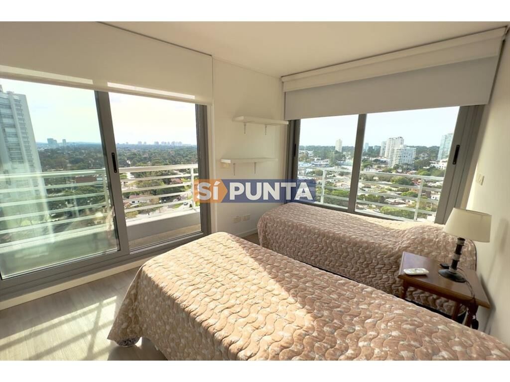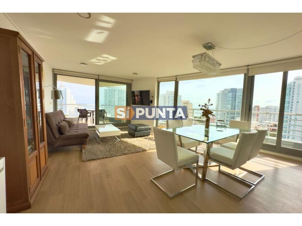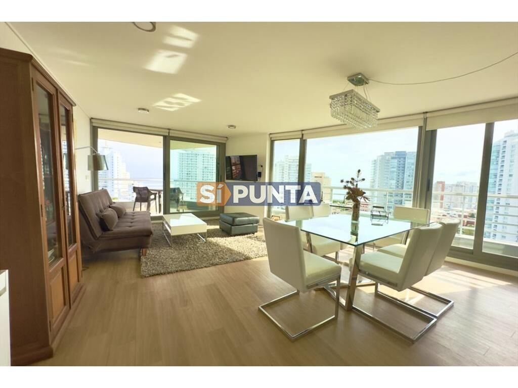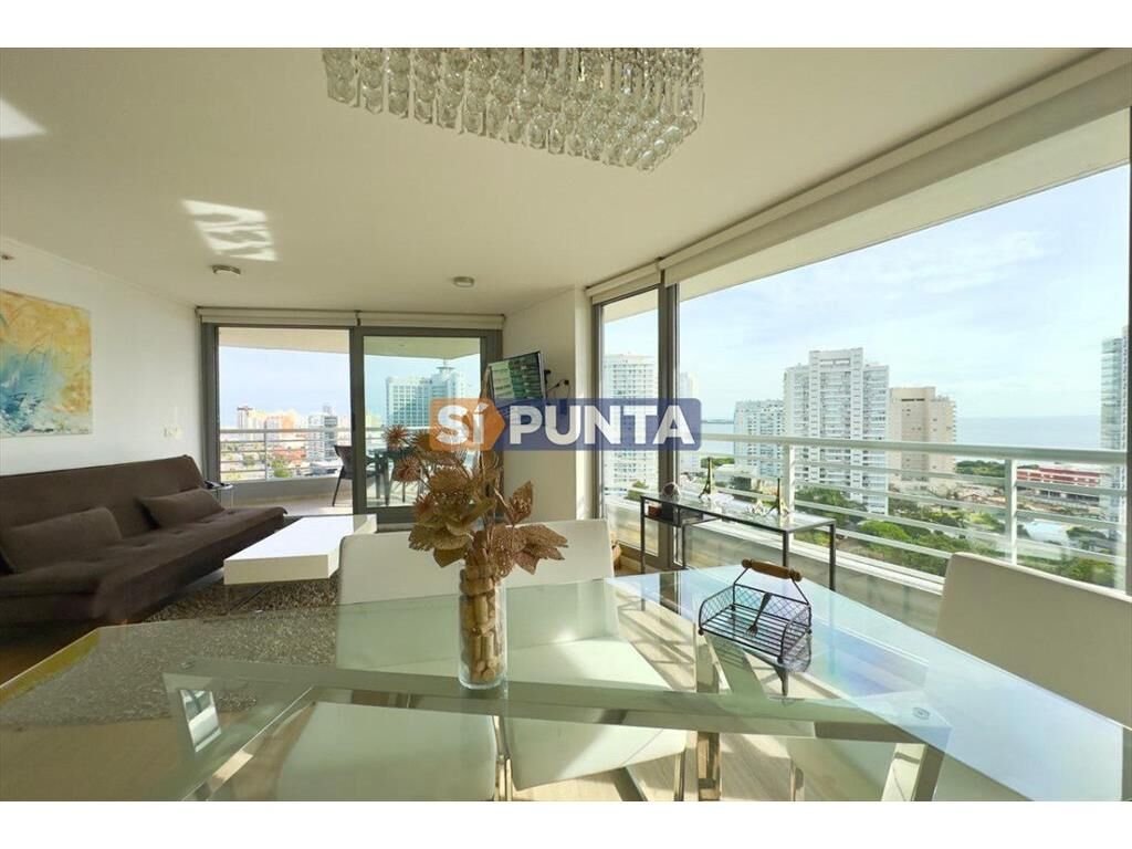 Comodidades : - Dos dormitorios - Dos baños (1 suite)- Aire en todos los ambientes- Garage - Servicio de mucama Hermosa vista hacia la playa mansa y puerto de Punta del este