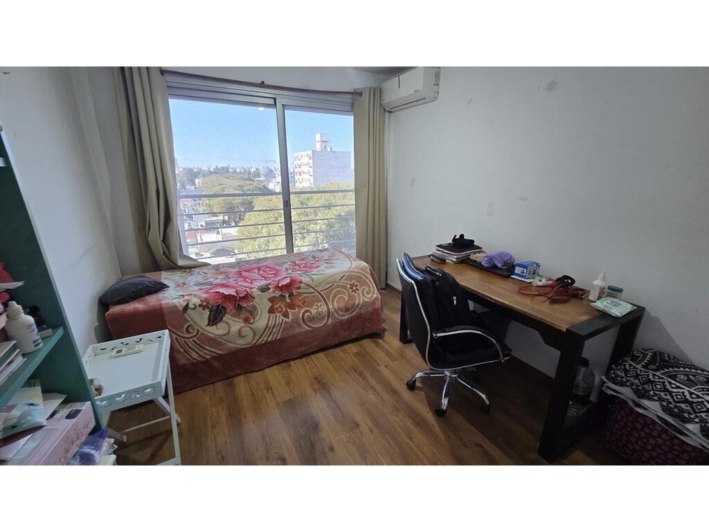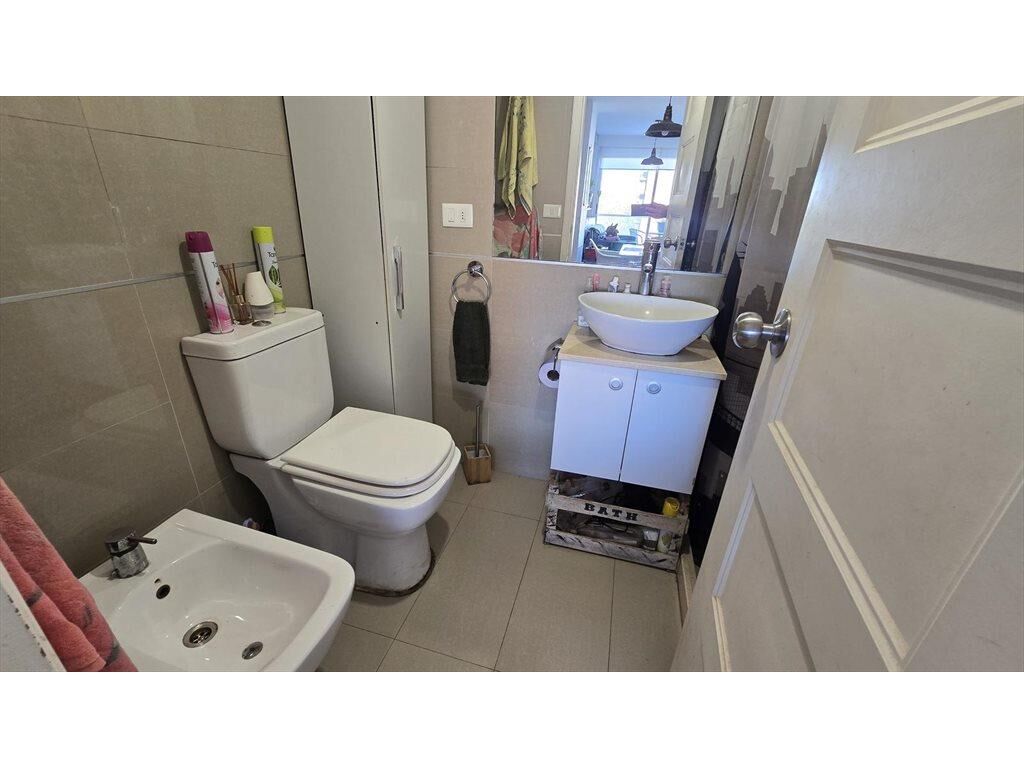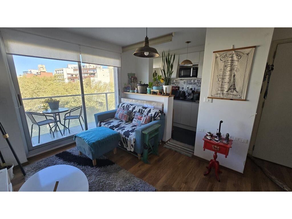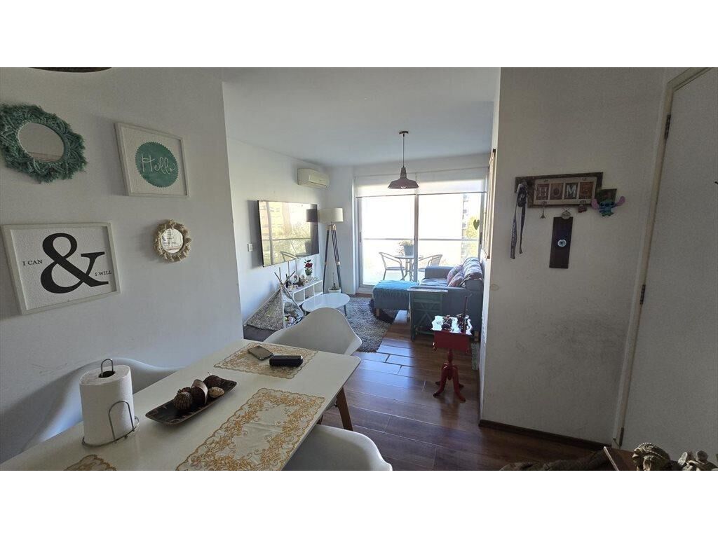 Amplio living comedor con salida a terraza, cocina semi-integrada con muebles aéreos y bajo mesada, baño completo.